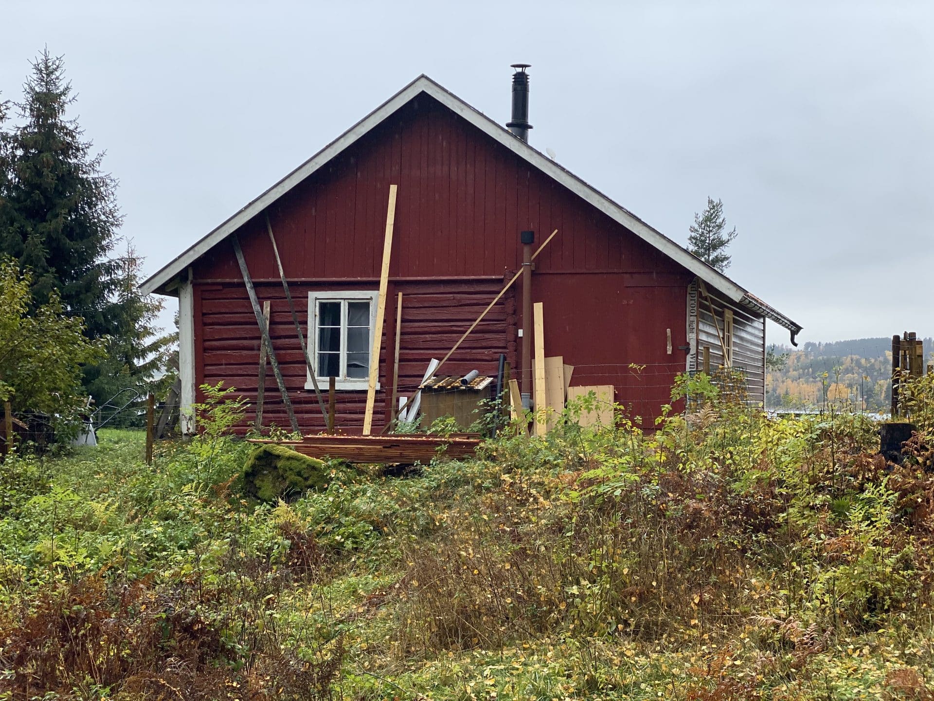 Ser på laftekassa at huset er gammelt. Men fint vedlikeholdt og tydeligvis i bruk.