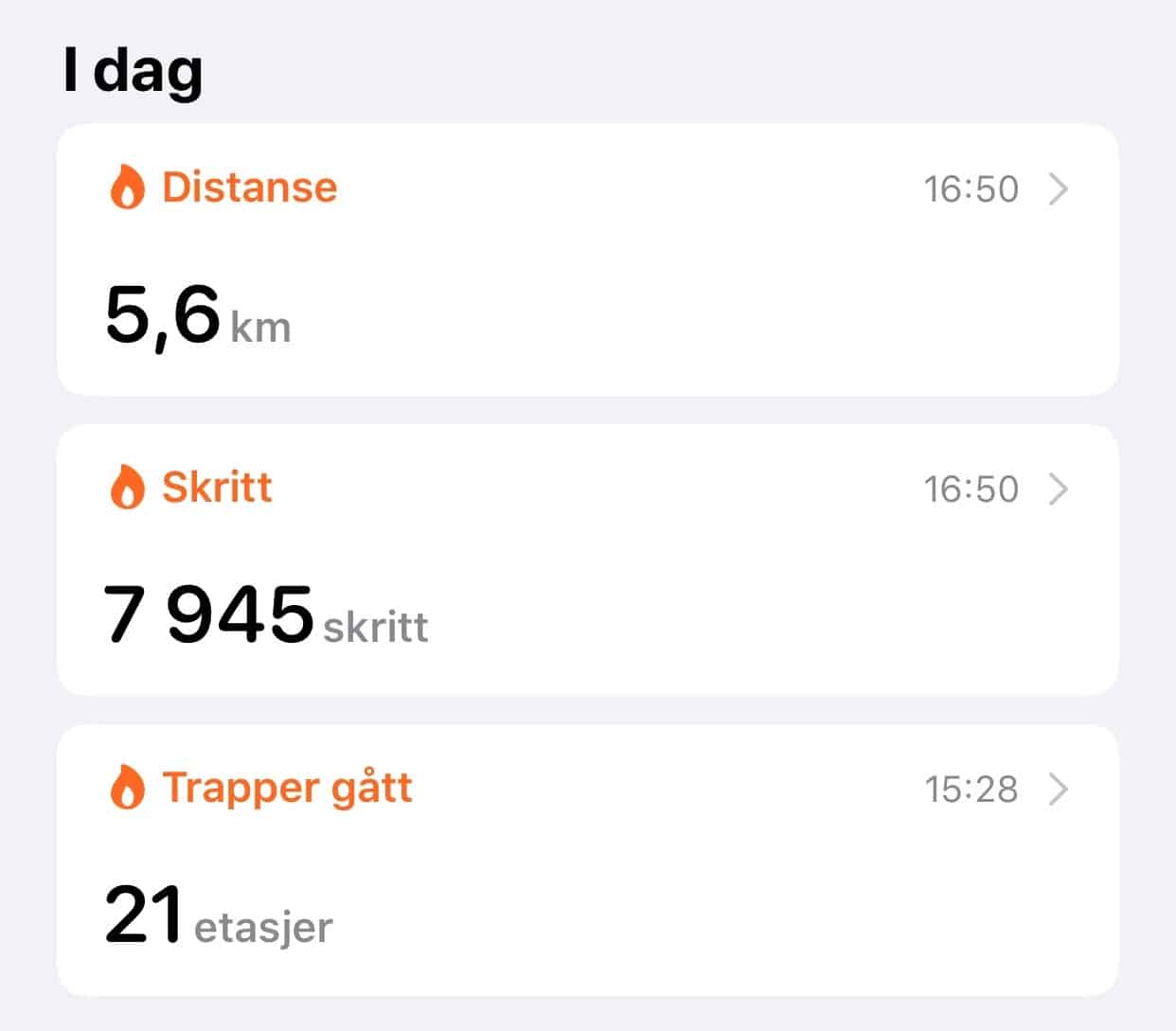 iPhone melder dette, det er bra samsvar. Her er også det andre jeg har gått i løpet av dagen.