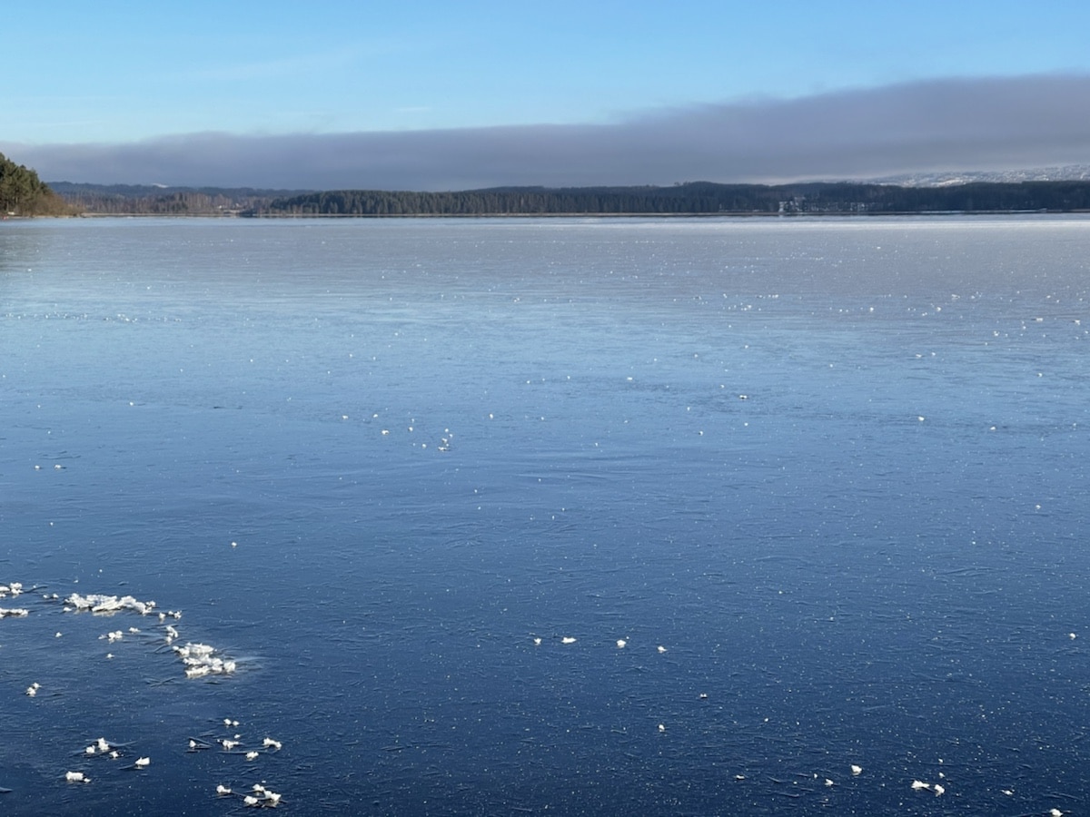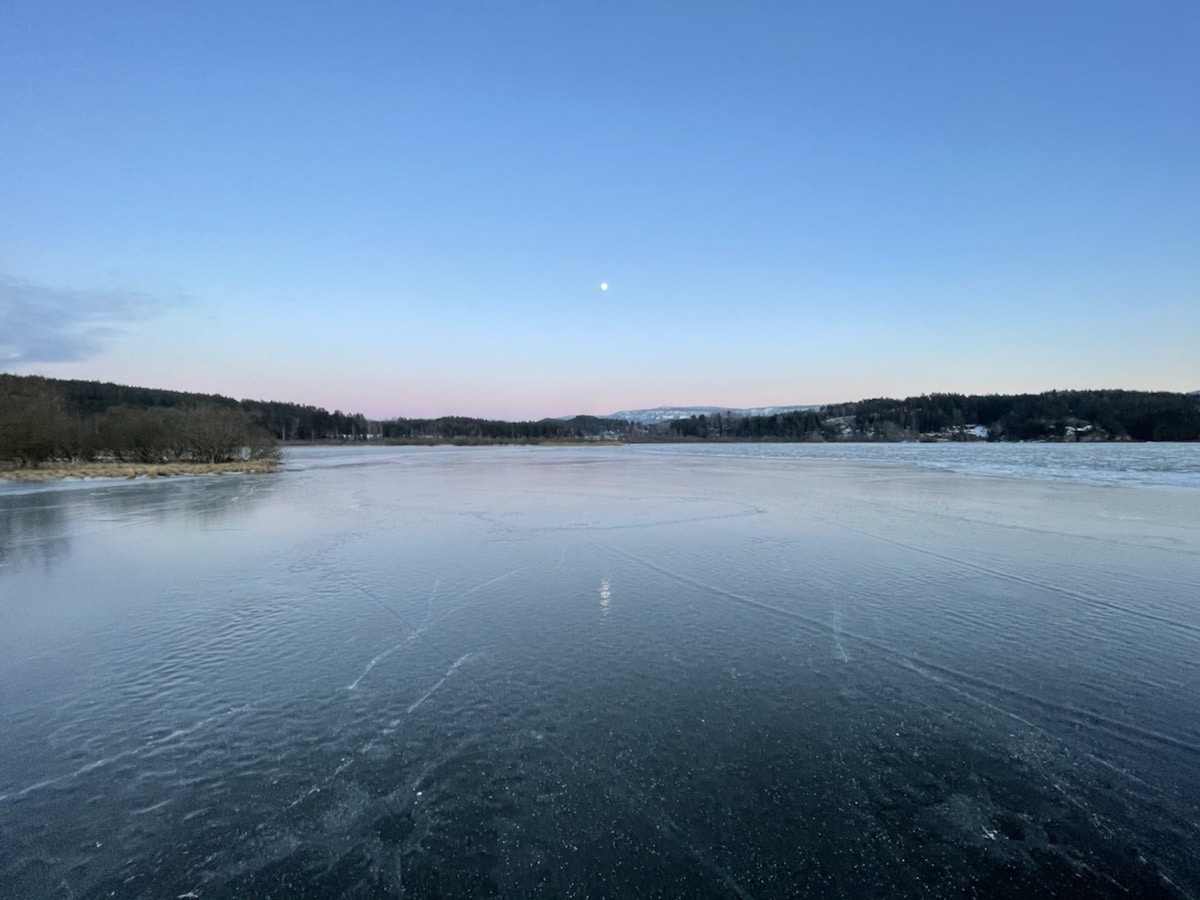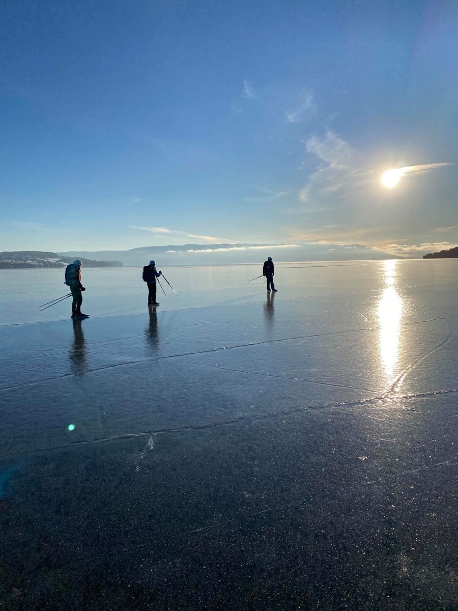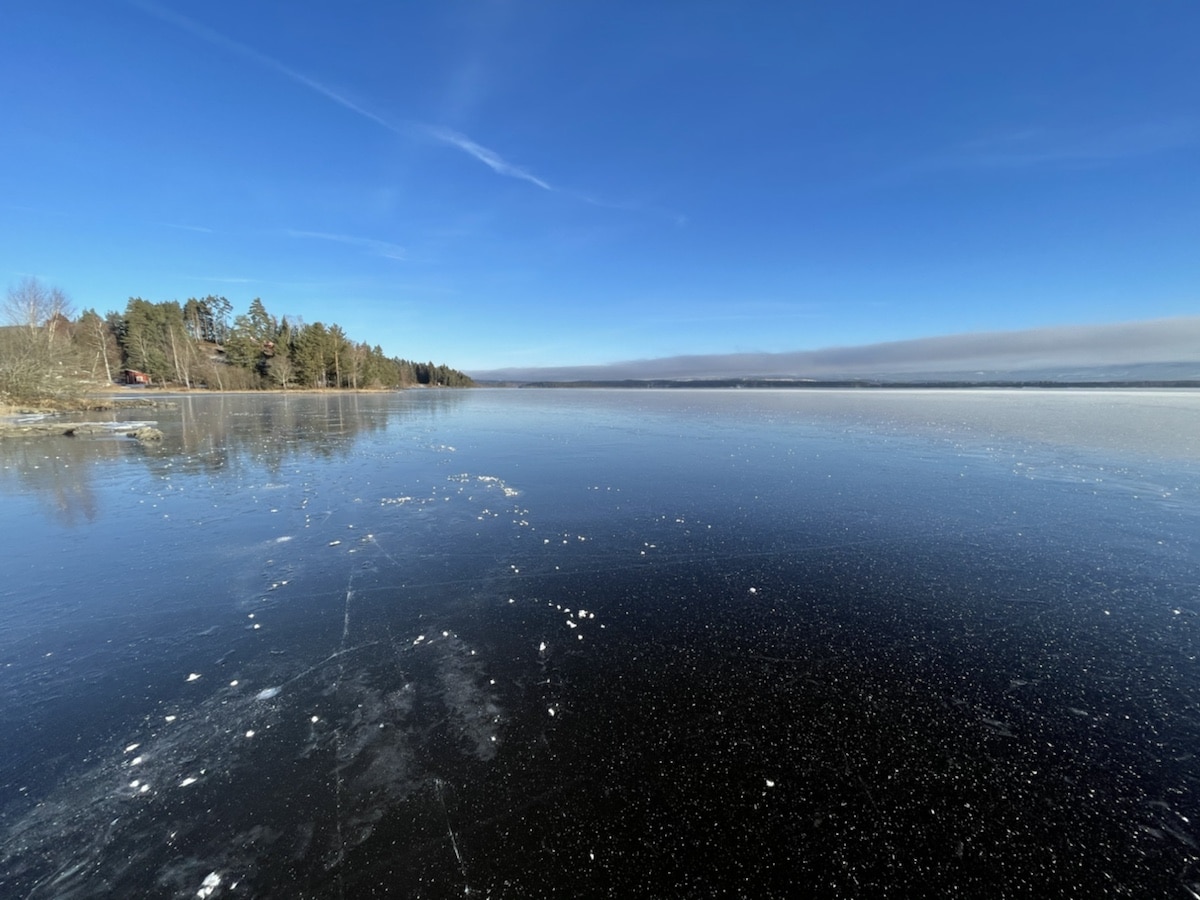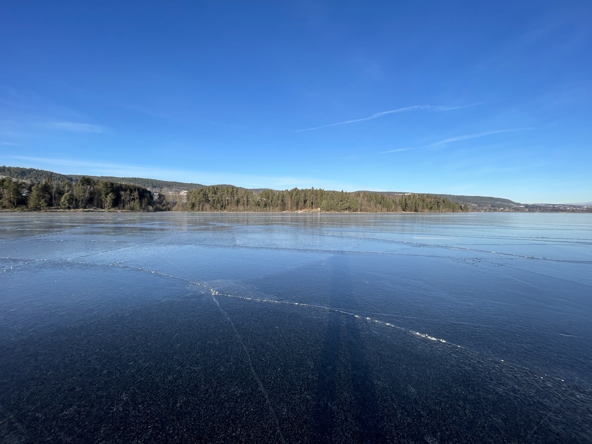 Da ble det nok en tur i sol og kulde på Nordfjorden og opp til Sørgefoss. Mye flott is, kan bli et stort område i morgen som kan bli bra, men det var et parti som har gått fra 8 til 4.5 cm i løpet av 24 timer pga varmt vann i Tyrifjorden. Meget vanskelig å lese isen, på grensa til umulig og noen steder umulig….