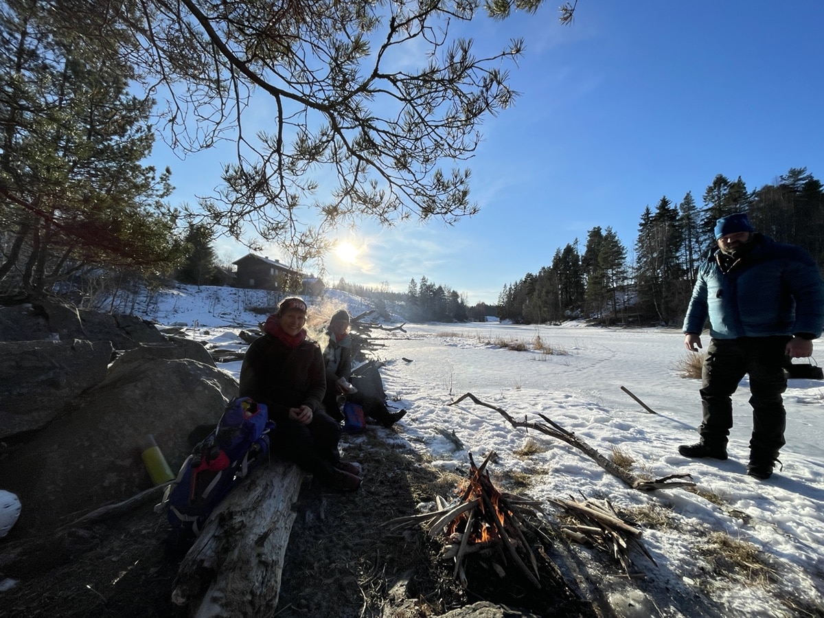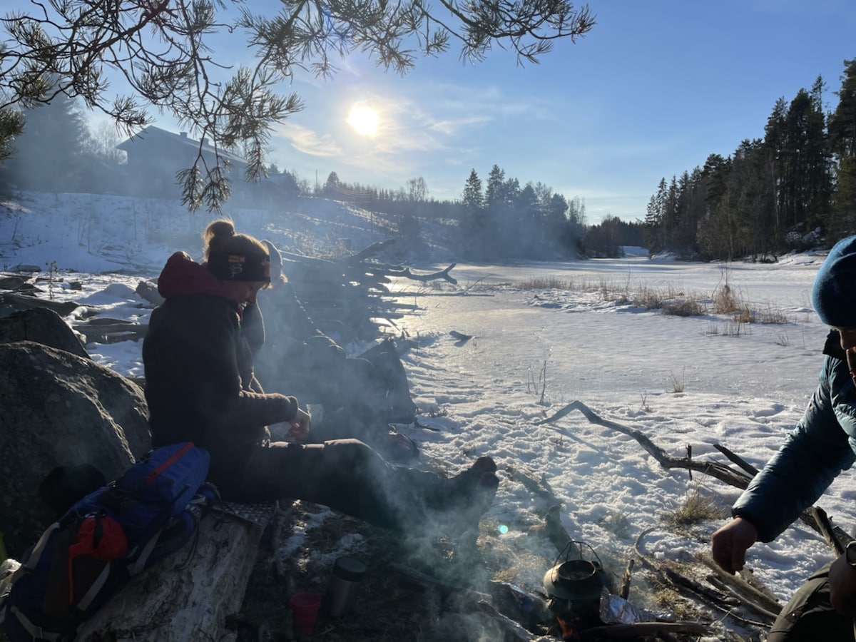 Ser ut som Lill Hege R. kommer til å holde lenge, ferdig røkt! Morten A. koker kaffe, på brådypt elvevann