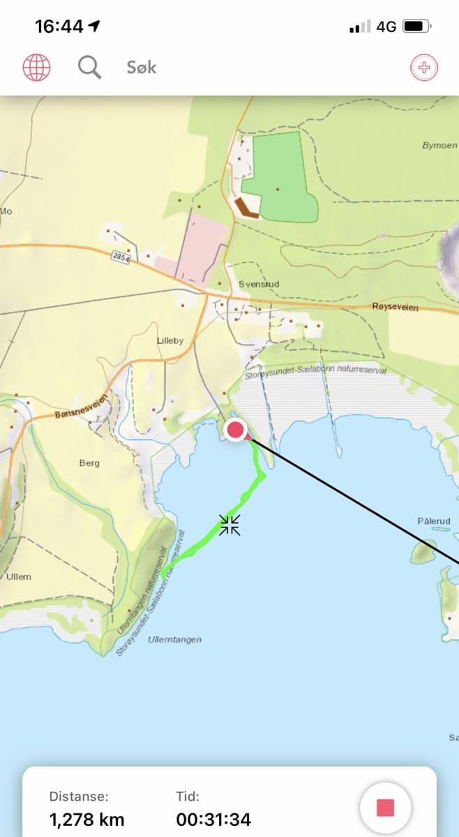 Her traff vi i på 4.5 cm, et sted det var 8 cm is i går! Sort er sporet i går, rødt er i dag.