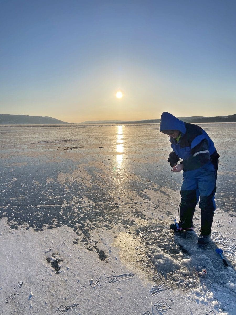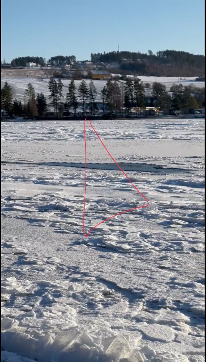 Fulgte kanten på åpne råka i god avstand – 9 cm tykk is der jeg målte.