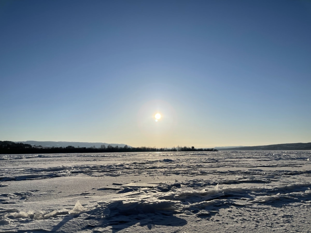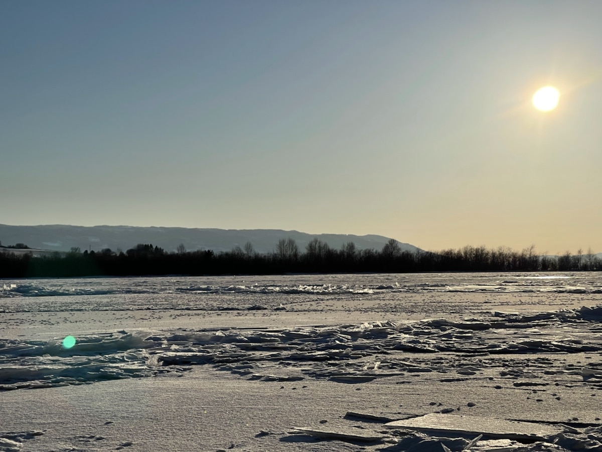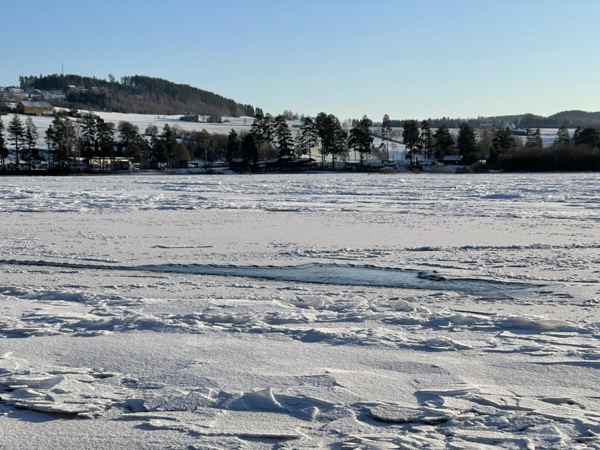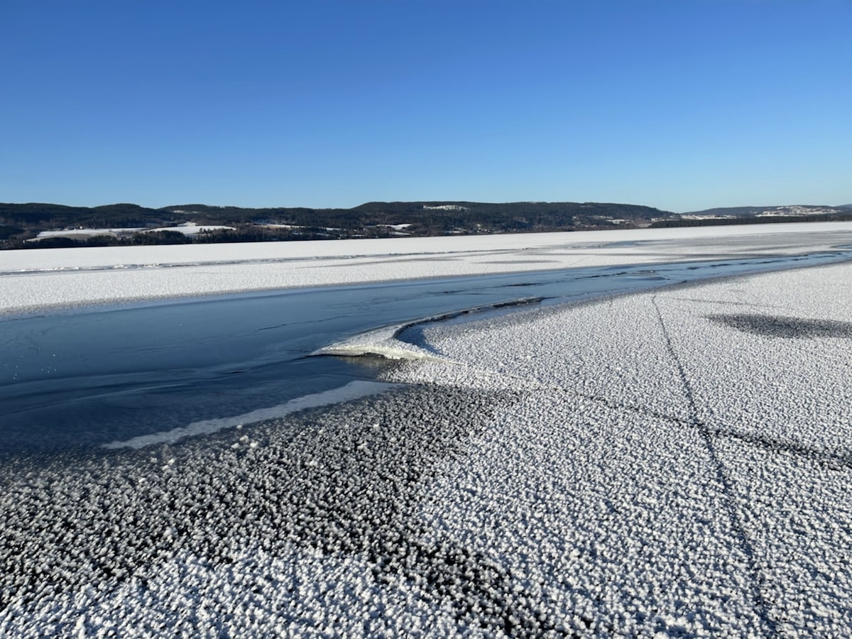 Bare litt snødriver innerst. Storelva har frosset igjen!