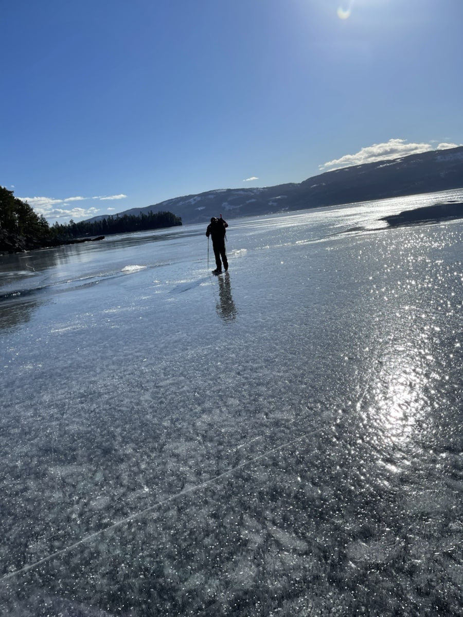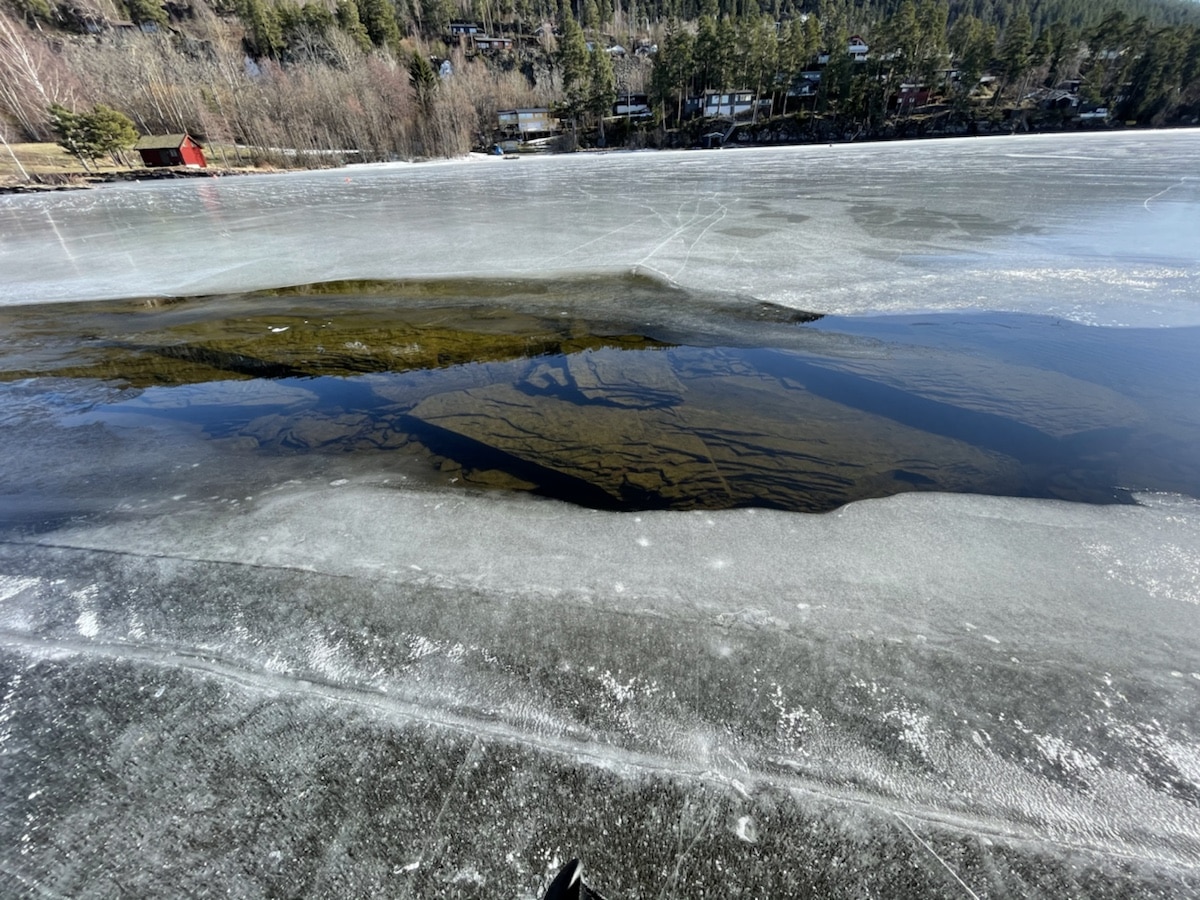 Etter delvis bomtur til Sperillen, ble det Tyrifjorden. Litt opplæring i Våris. Begynner å bli myk og tynn is ved Utøya. Ca 60 cm sprekk/råk og myk is om du tenker deg dit. Tynt ved Geitøya og Purkøya. Mye råker ved Bombeøya. Men det finnes store partier med flott is, 30 cm klar stålis i skyggepartier ved Svartøyene og ved Rytteraker. Ellers veldig varierende, blitt mer ruglete områder og tynnere is mange steder.
