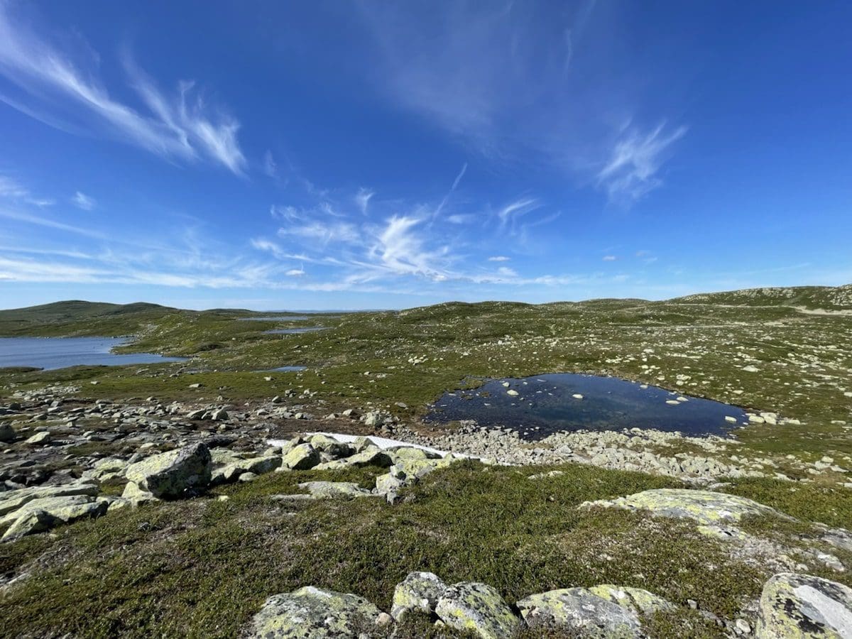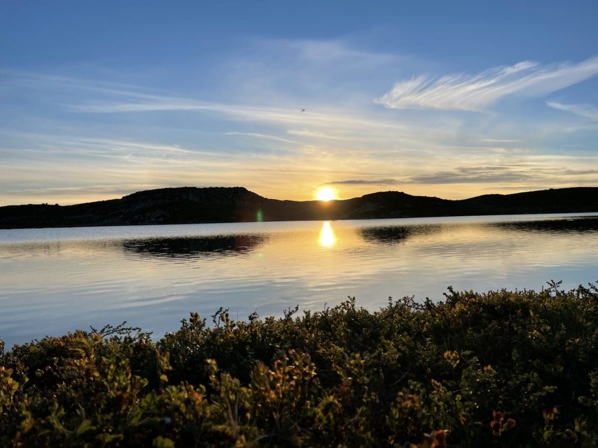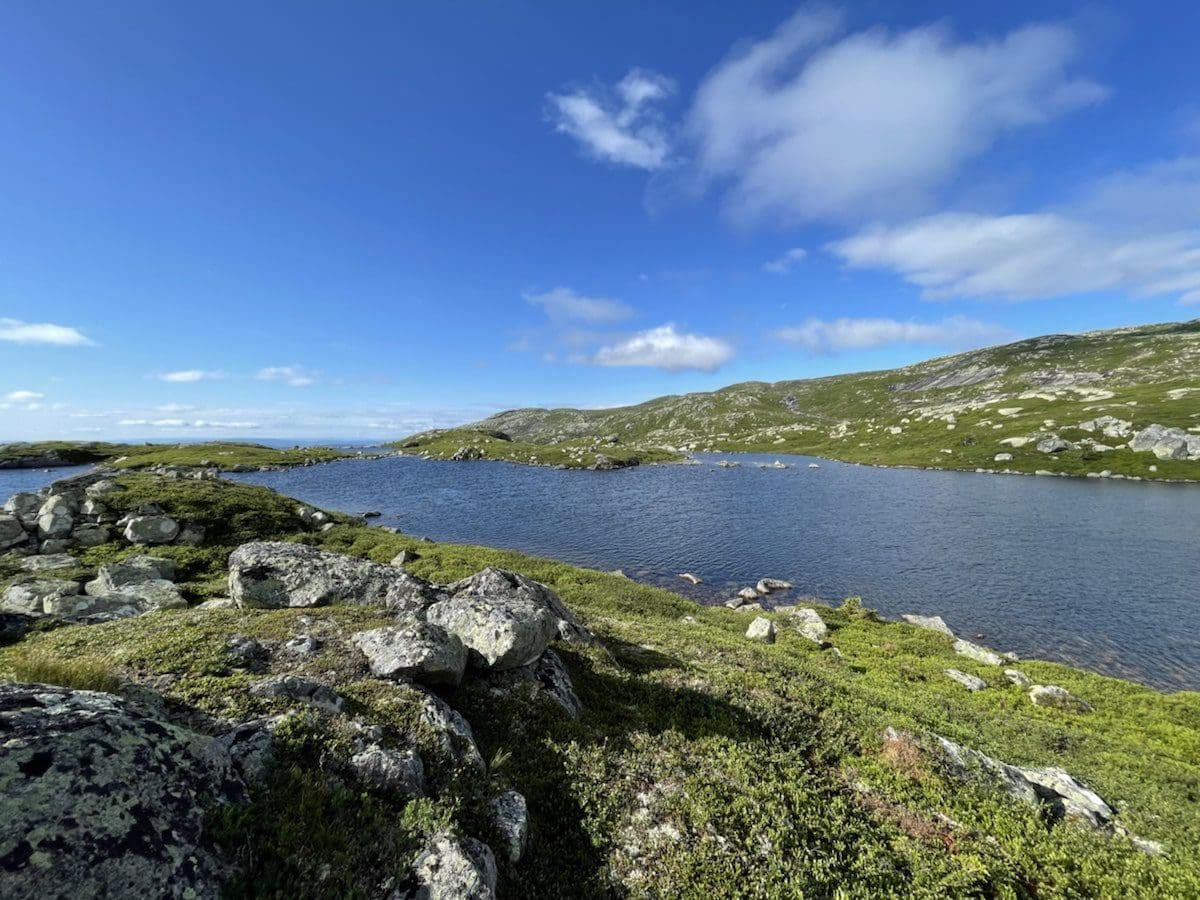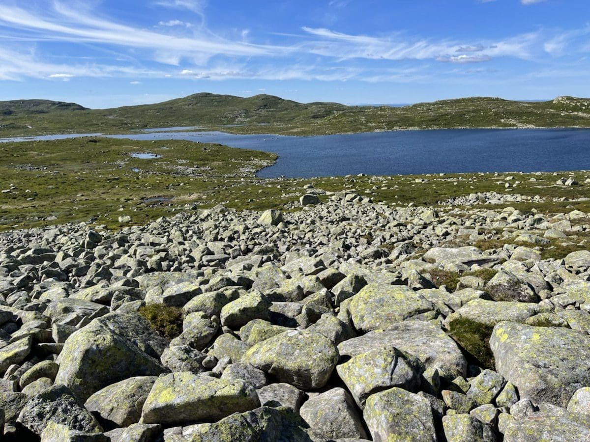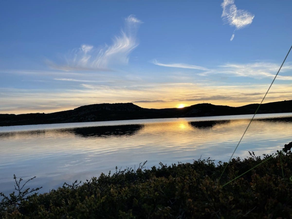 Det blei en kveld og ei natt som jeg vil huske, vind snudde, og økte i styrke. Så en teltplugg løsnet, og det var masse bråk i teltet. Det var meldt 13m/s i kasta men oppfattes som betydelig mere. Så jeg måtte flytte telte i løpet av natta. Det ble i skråningen ned mot vannet.