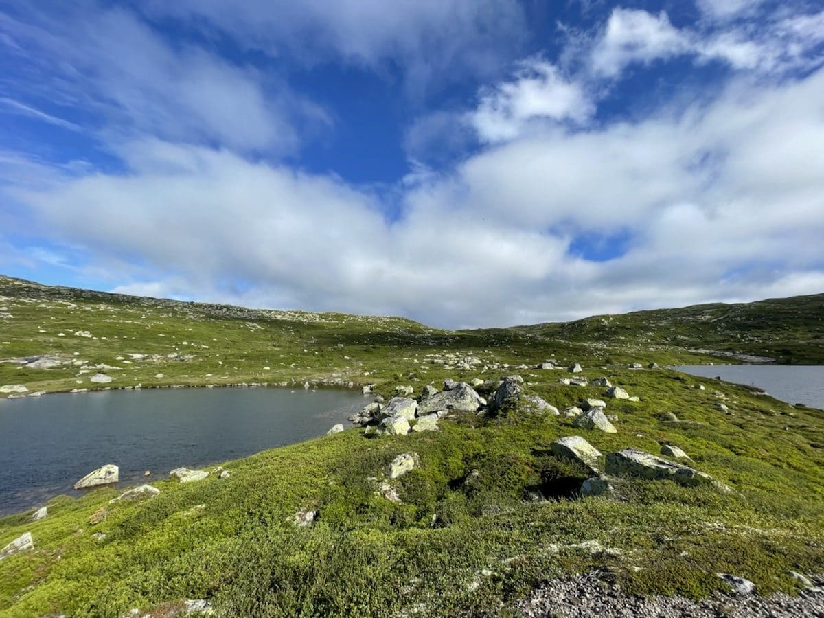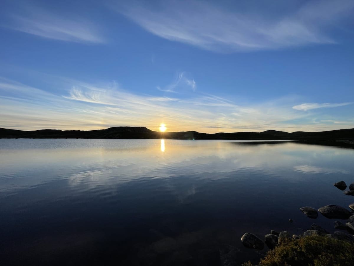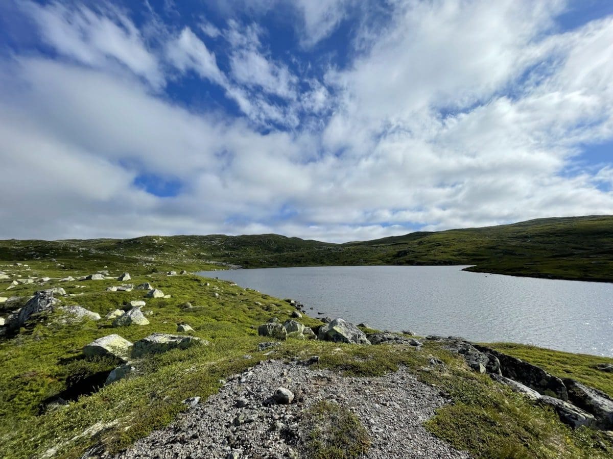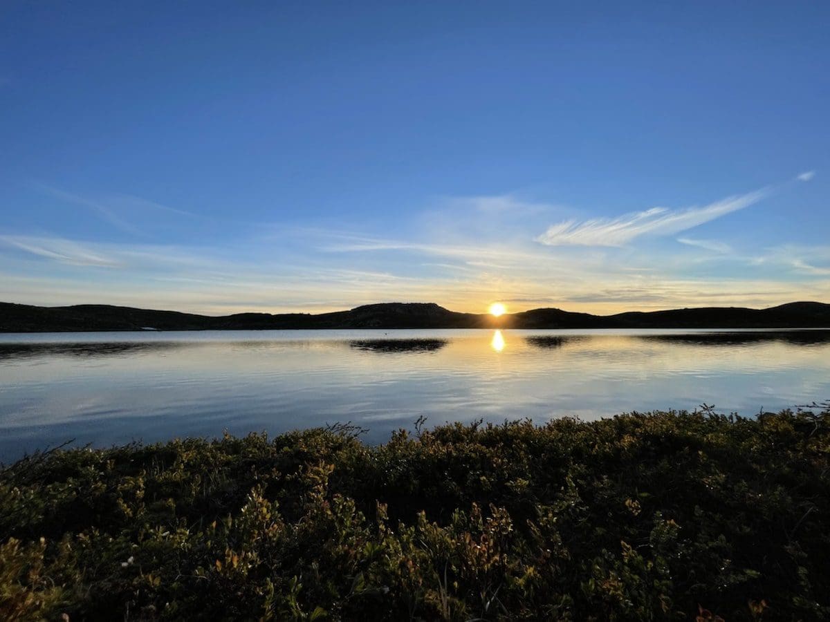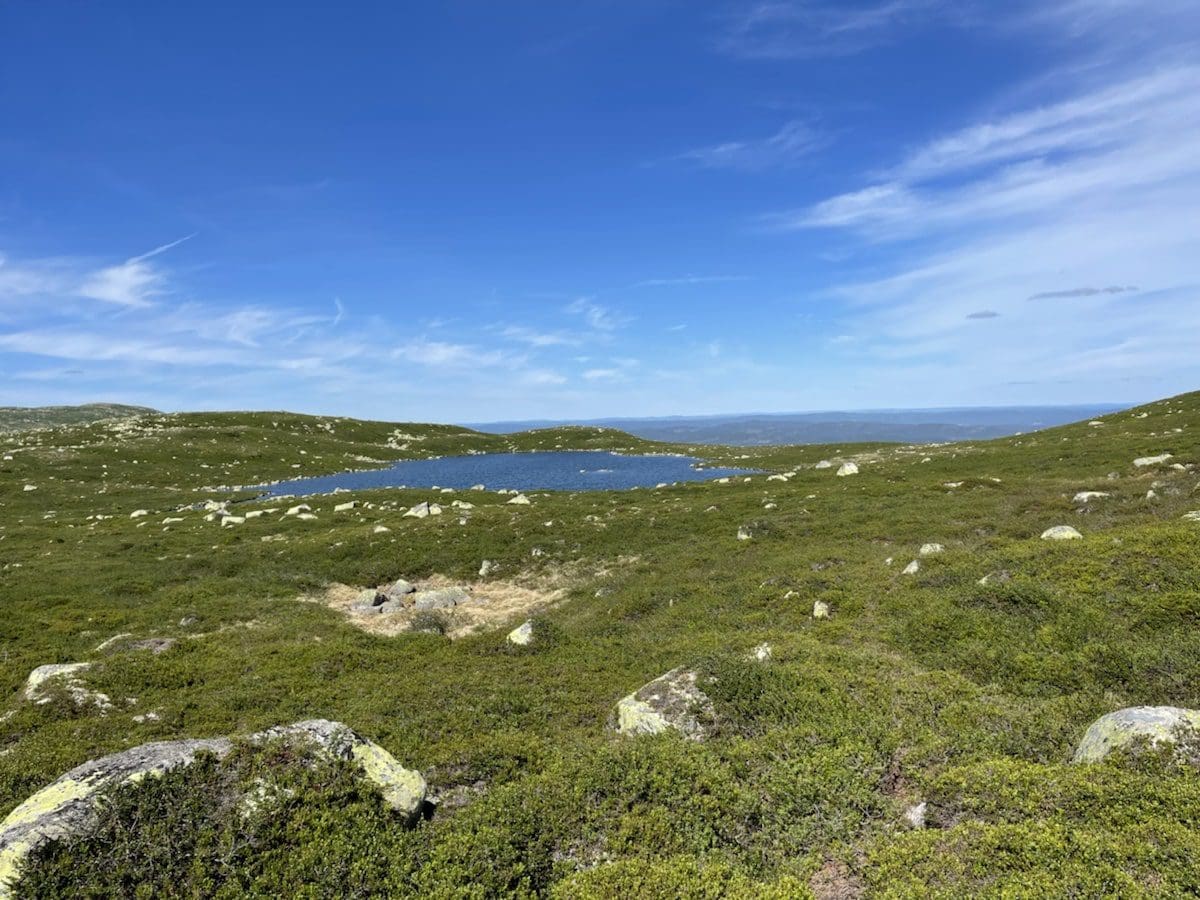 Det blei en kveld og ei natt som jeg vil huske, vind snudde, og økte i styrke. Så en teltplugg løsnet, og det var masse bråk i teltet. Det var meldt 13m/s i kasta men oppfattes som betydelig mere. Så jeg måtte flytte telte i løpet av natta. Det ble i skråningen ned mot vannet.