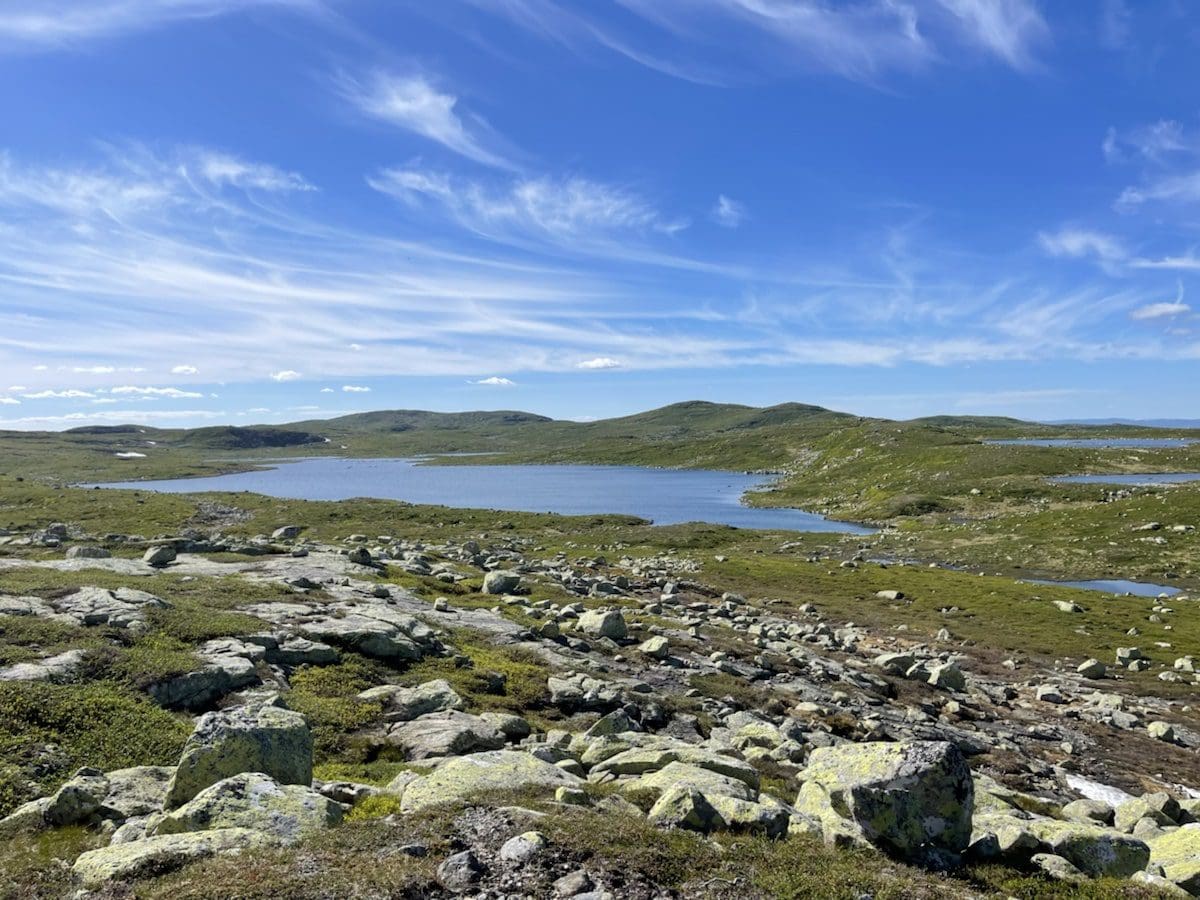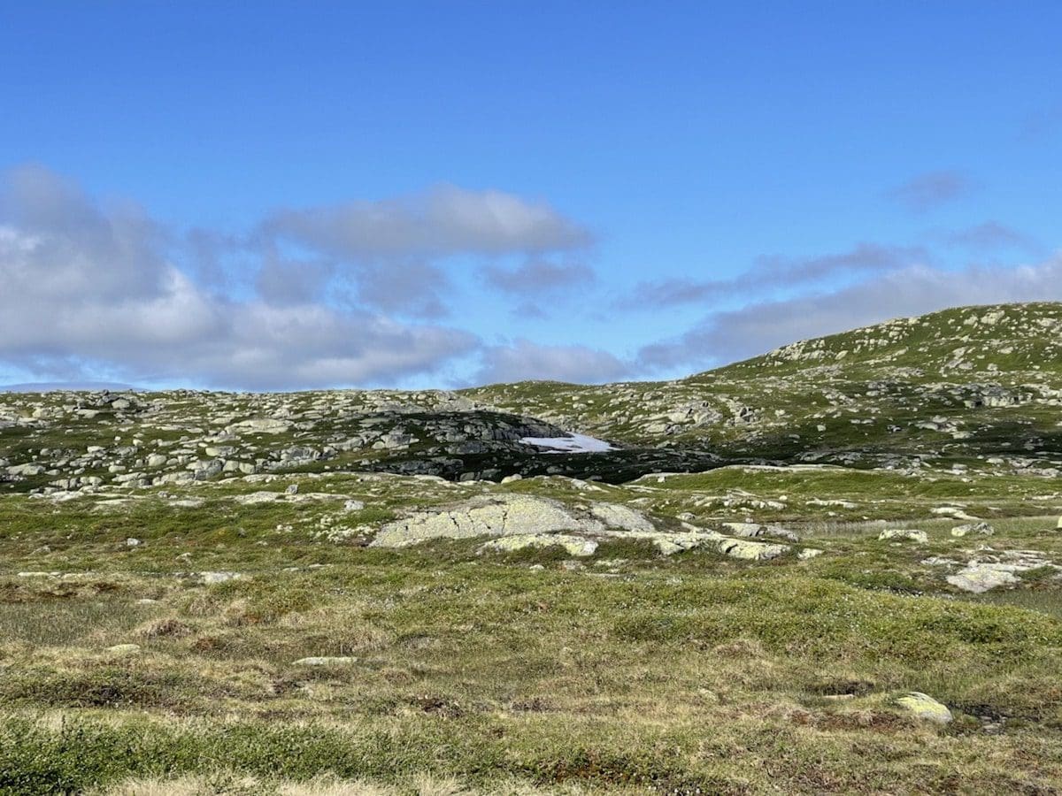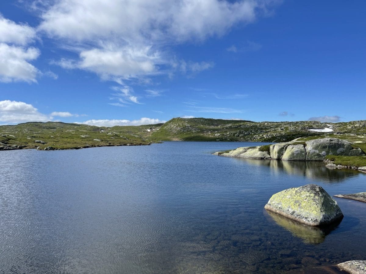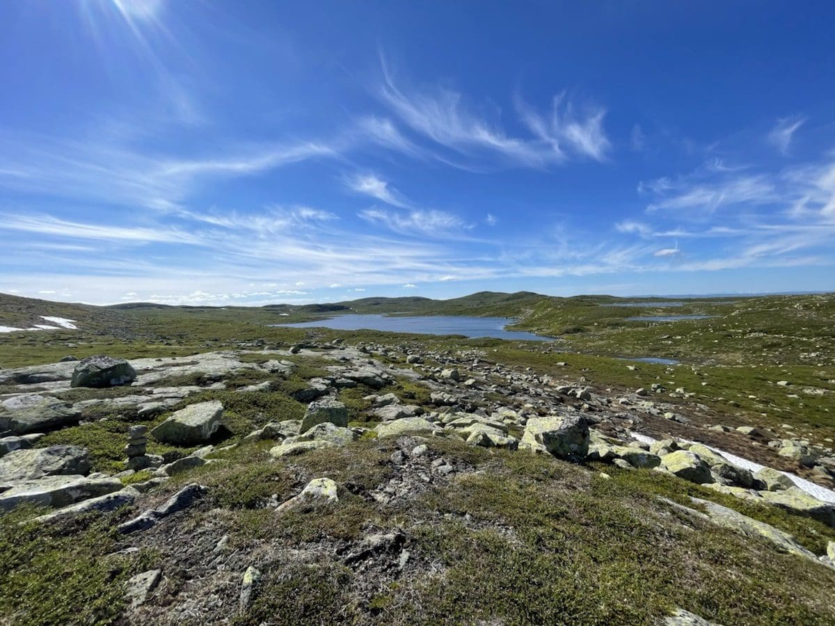 Det blei en kveld og ei natt som jeg vil huske, vind snudde, og økte i styrke. Så en teltplugg løsnet, og det var masse bråk i teltet. Det var meldt 13m/s i kasta men oppfattes som betydelig mere. Så jeg måtte flytte telte i løpet av natta. Det ble i skråningen ned mot vannet.