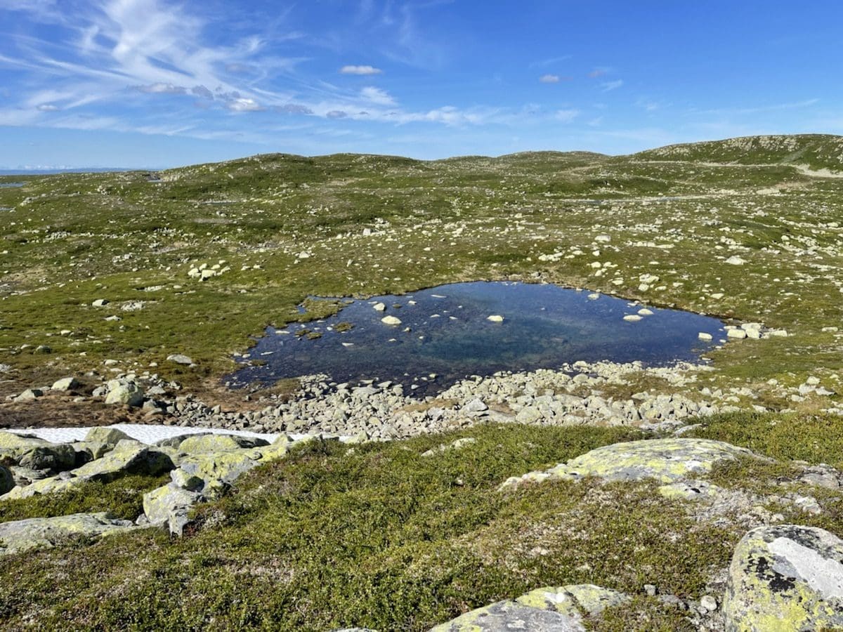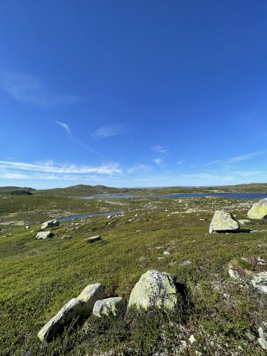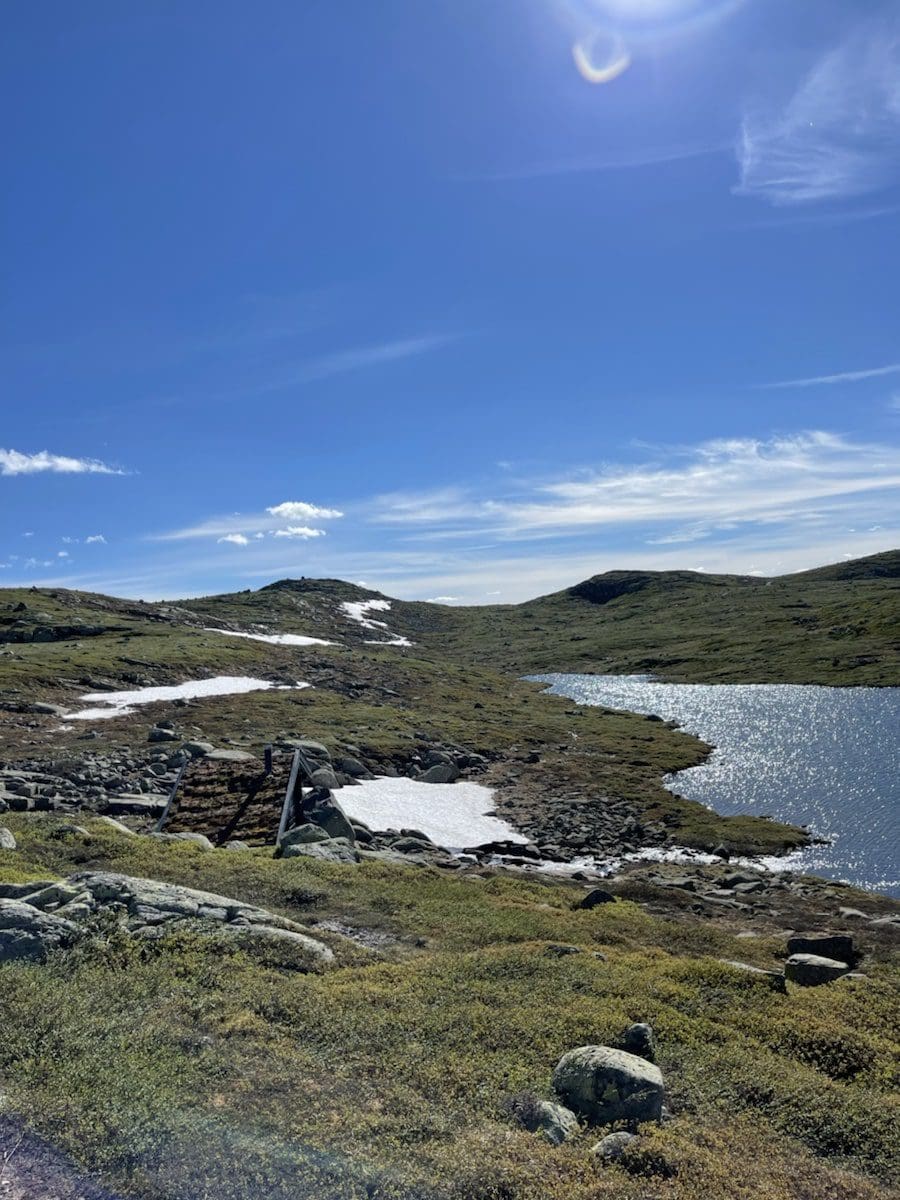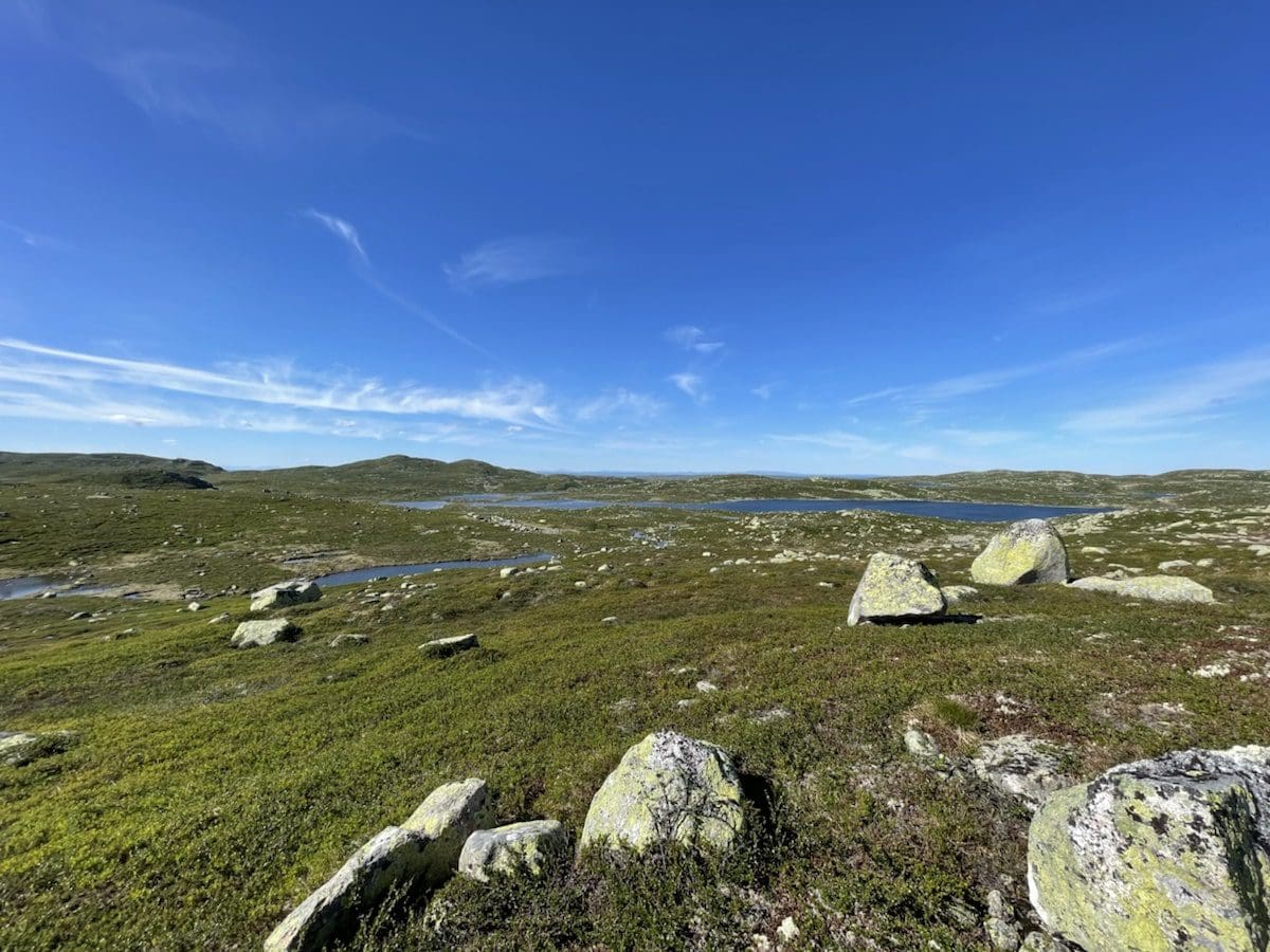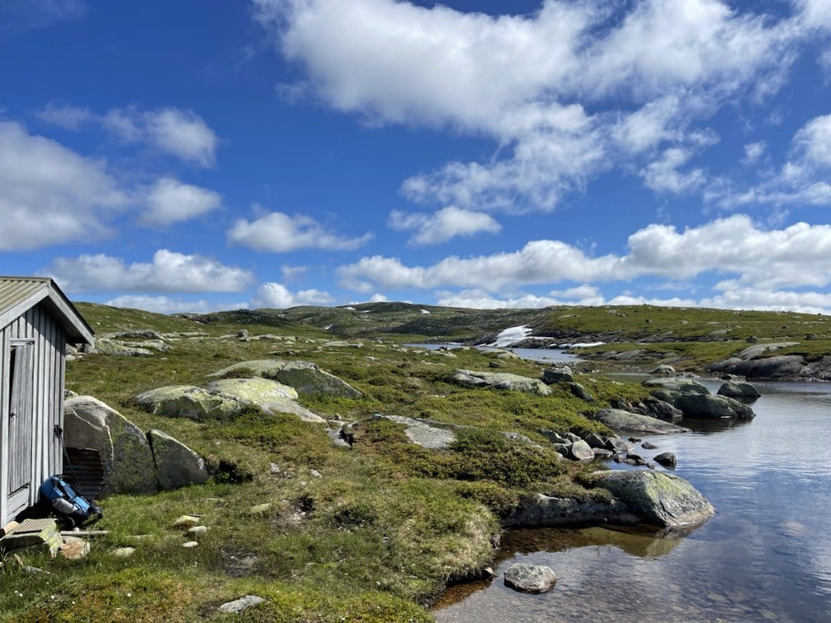 Det blei en kveld og ei natt som jeg vil huske, vind snudde, og økte i styrke. Så en teltplugg løsnet, og det var masse bråk i teltet. Det var meldt 13m/s i kasta men oppfattes som betydelig mere. Så jeg måtte flytte telte i løpet av natta. Det ble i skråningen ned mot vannet.