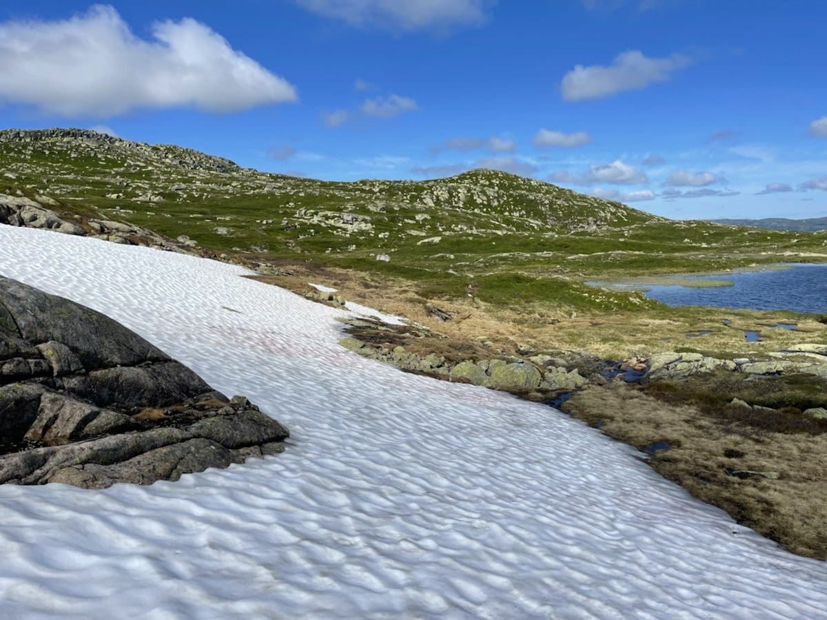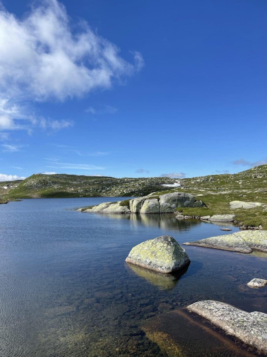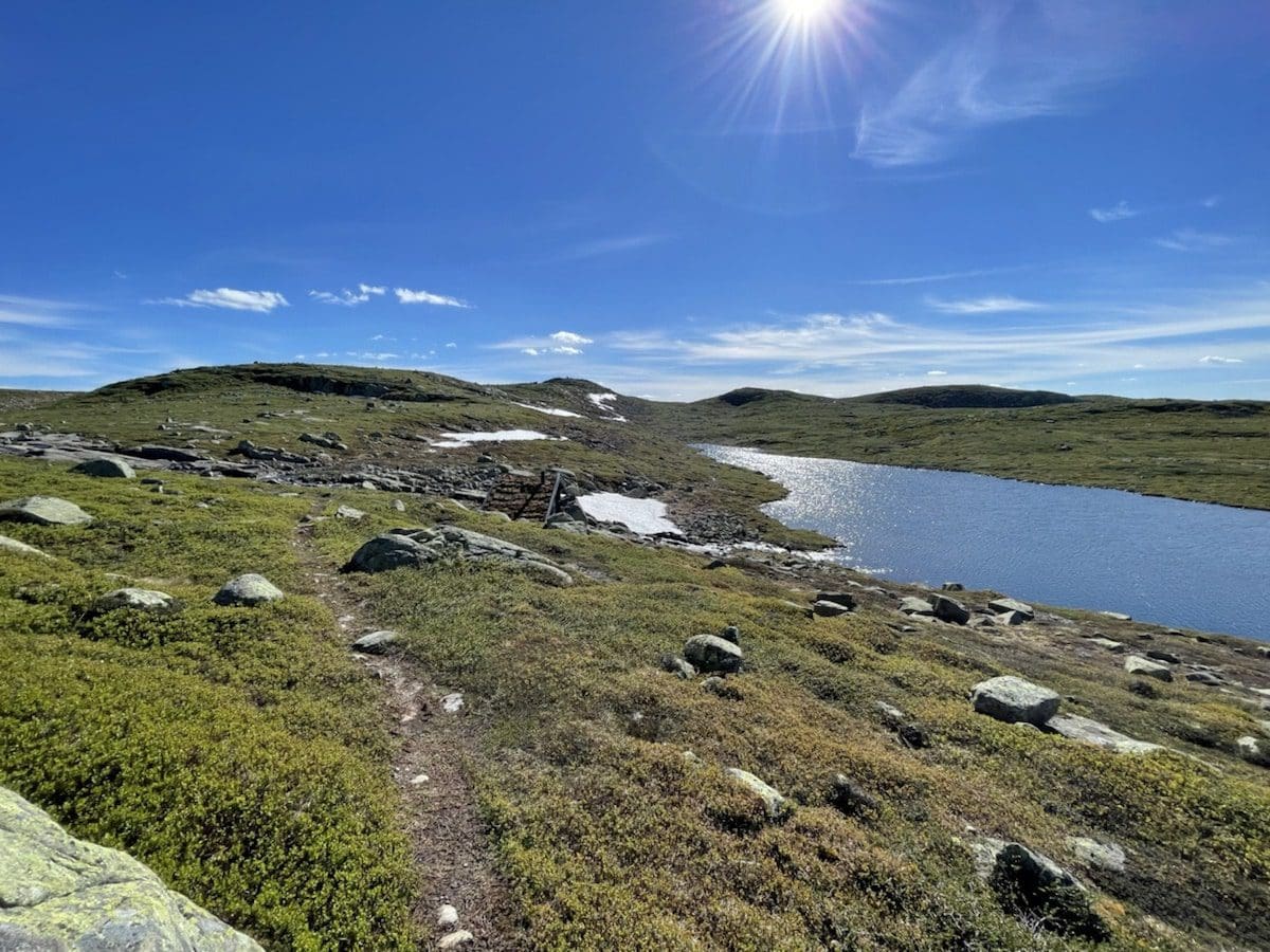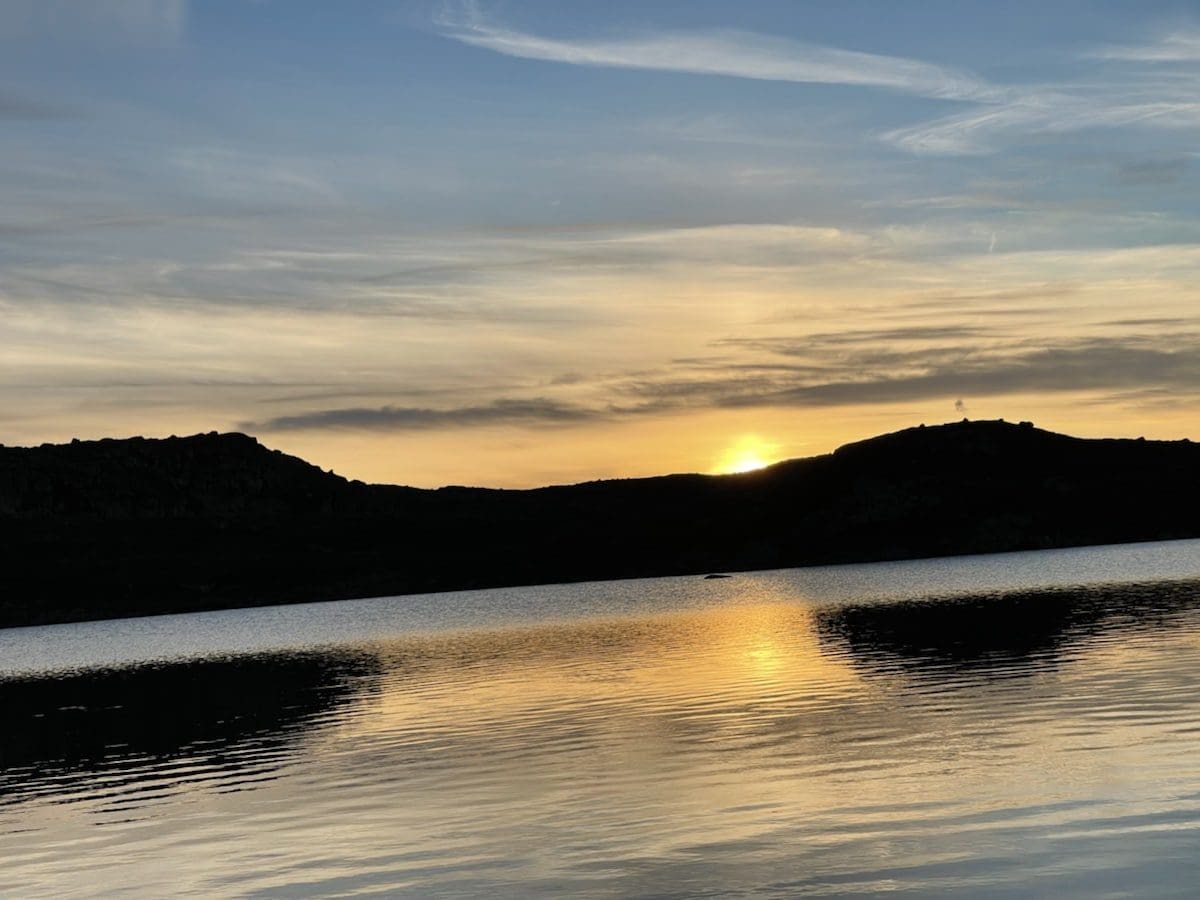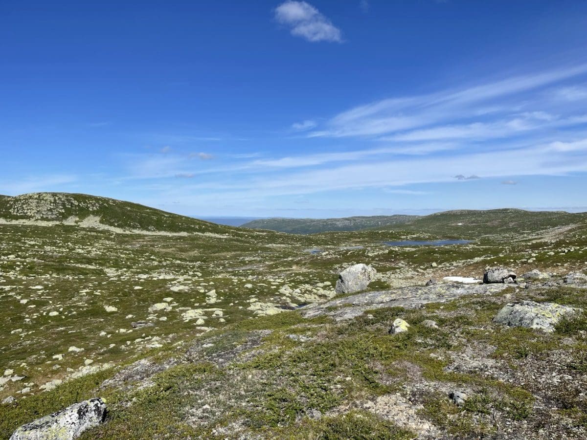Det blei en kveld og ei natt som jeg vil huske, vind snudde, og økte i styrke. Så en teltplugg løsnet, og det var masse bråk i teltet. Det var meldt 13m/s i kasta men oppfattes som betydelig mere. Så jeg måtte flytte telte i løpet av natta. Det ble i skråningen ned mot vannet.