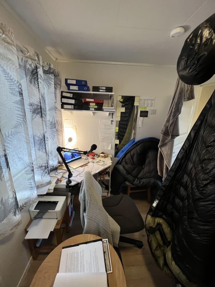Så tepper og 3 soveposer ble brukt for å dempe resonans.