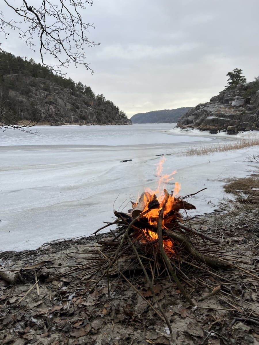 Bålpause, egentlig litt tidlig, men forslaget til både sted og tid var innertier av Morten.