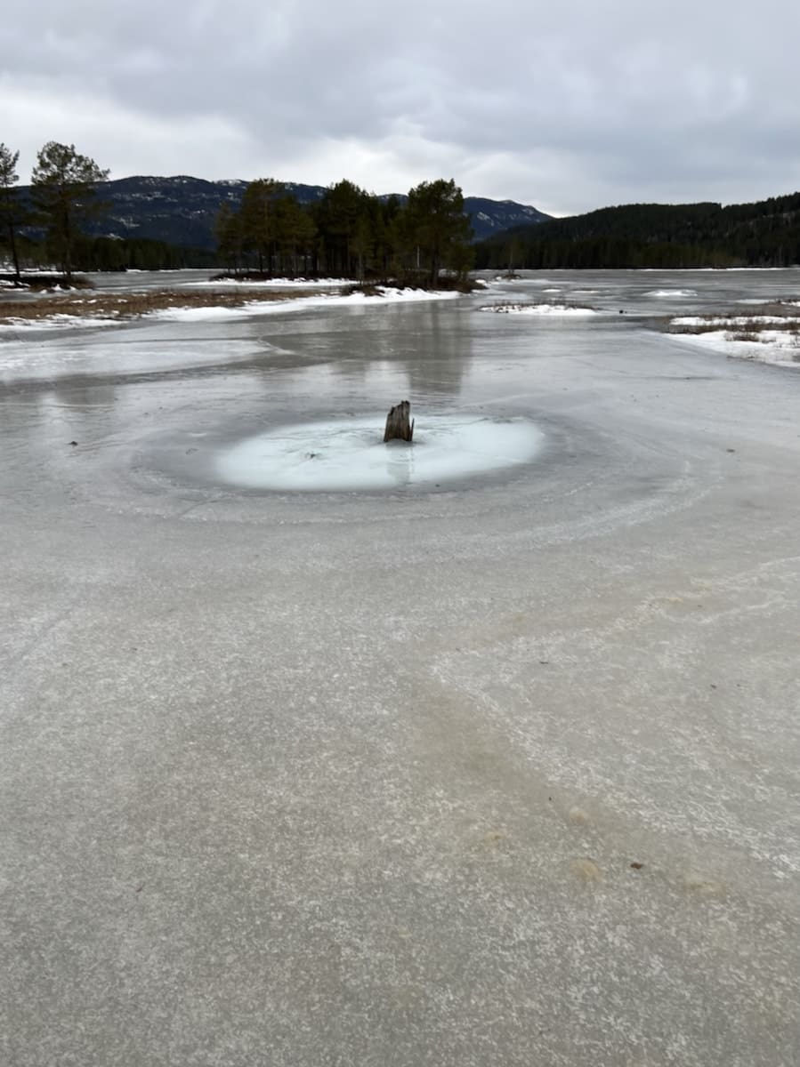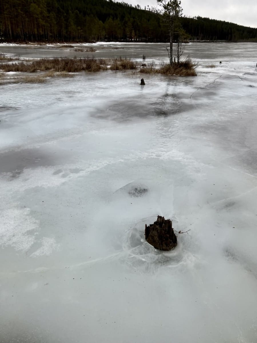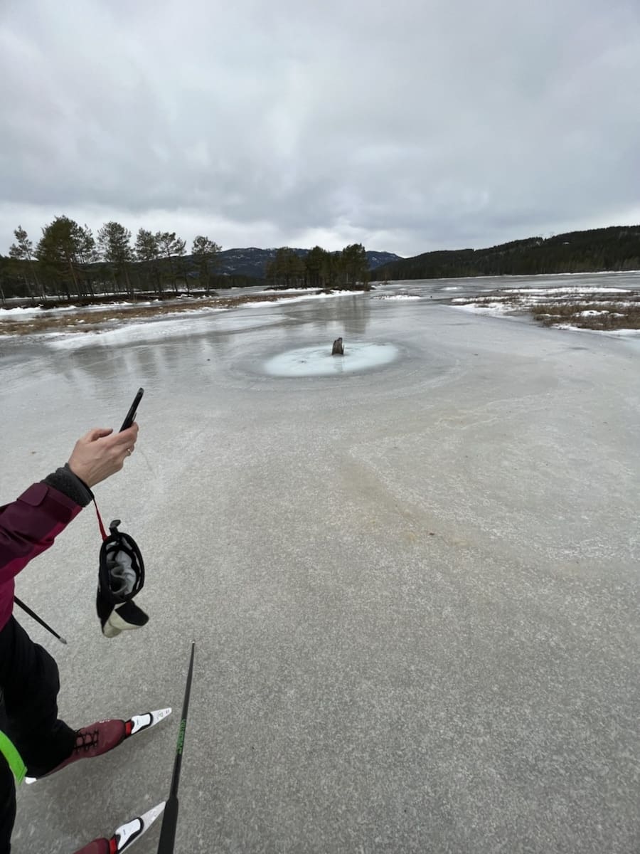 Mye vind, og strøm. Isen er 40 cm – men her er det åpent