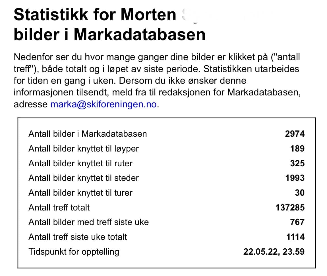 Litt synd å miste statistikken, men skjønner at de må utvikle systemene sine. Har en god bunke med bilder fra Ådalen som skal legges inn etterhvert.