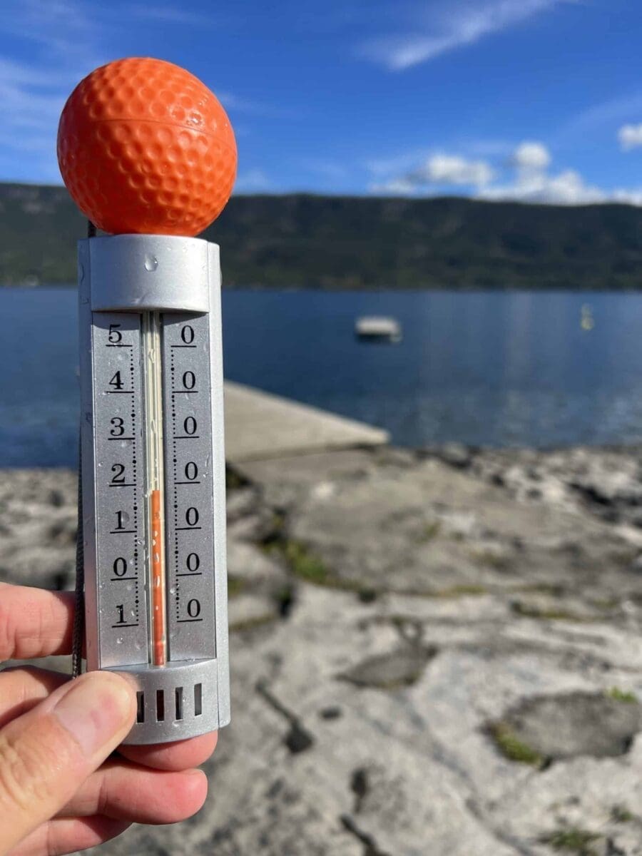 18.5 grader i vannet.