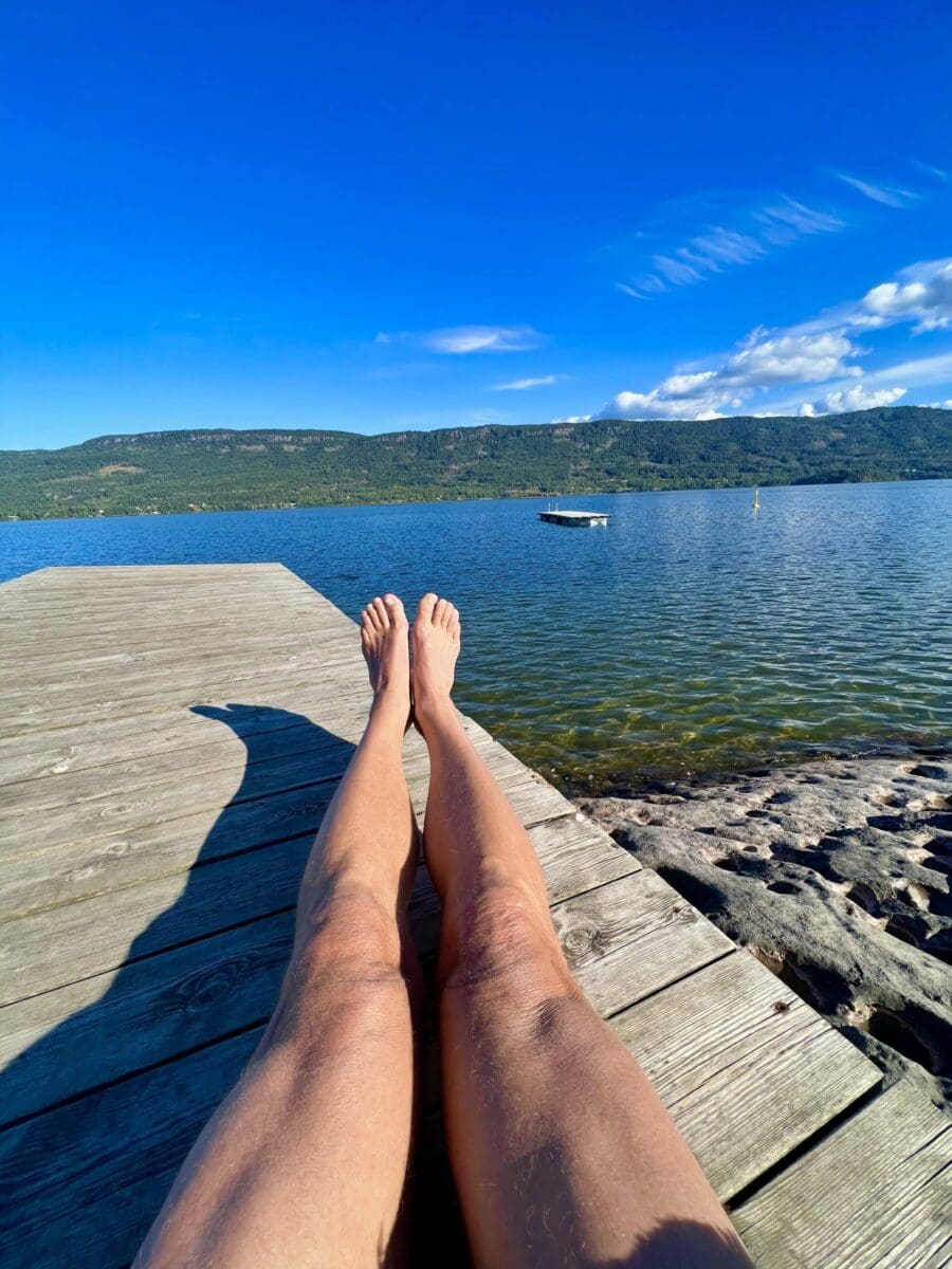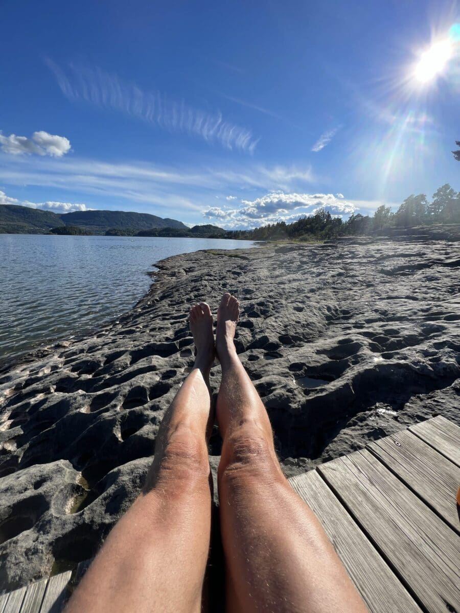 Men skyggen kom fort, så måtte ut på brygga, for å slippe skyggen.