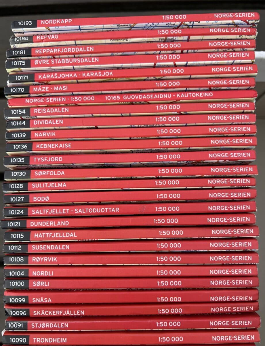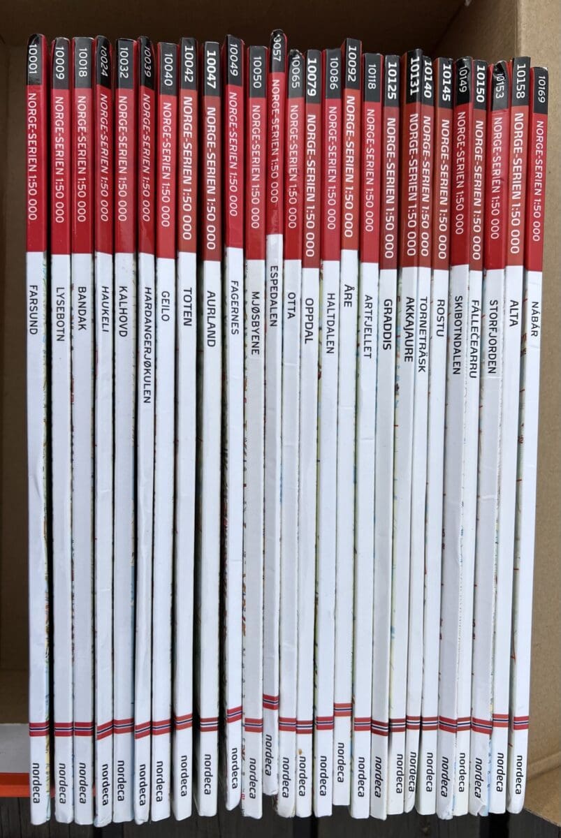 Jeg kjøpte jo i sin tid 50 kg med kart. Sorterte ut de jeg skulle ha, solgte resten på finn. Har vel stort sett komplett for å kunne gå det meste av turer som er aktuelt for min del. Det aller fleste karta er kjøpt på finn. Alt fra ubrukte, til godt brukte. Men disse er i Tyvek et slags plastmateriale. Solid og rivesikkert. Men ikke så lette å skrive på med blyant, det sitter ikke.