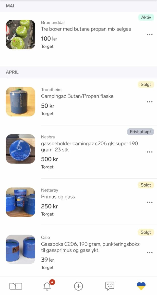 Så du kan få mye billig gass om du har en brenner med punktering eller click systemet!