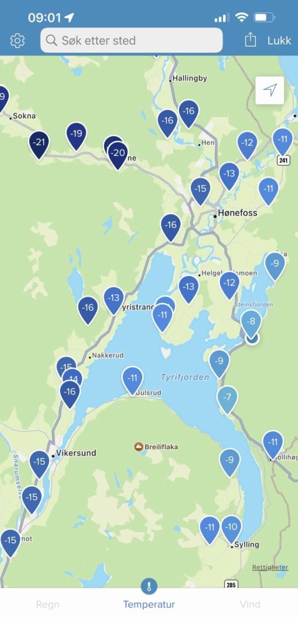 Netatmo appen måler temp hjemme hos folk, yr bruker disse i sine værvarsel. Du ser «nesten» hvordan været er – om det er åpent vann, klarvær, tåke etc.