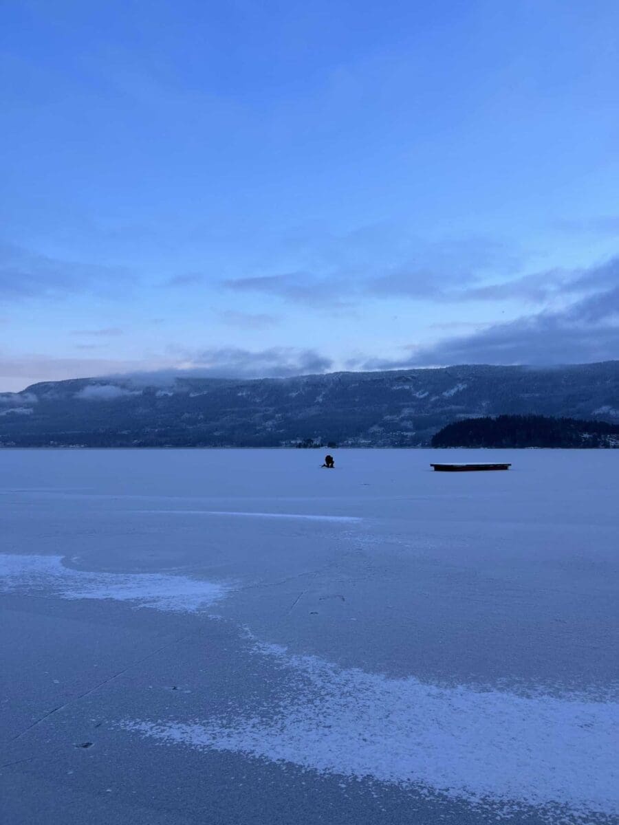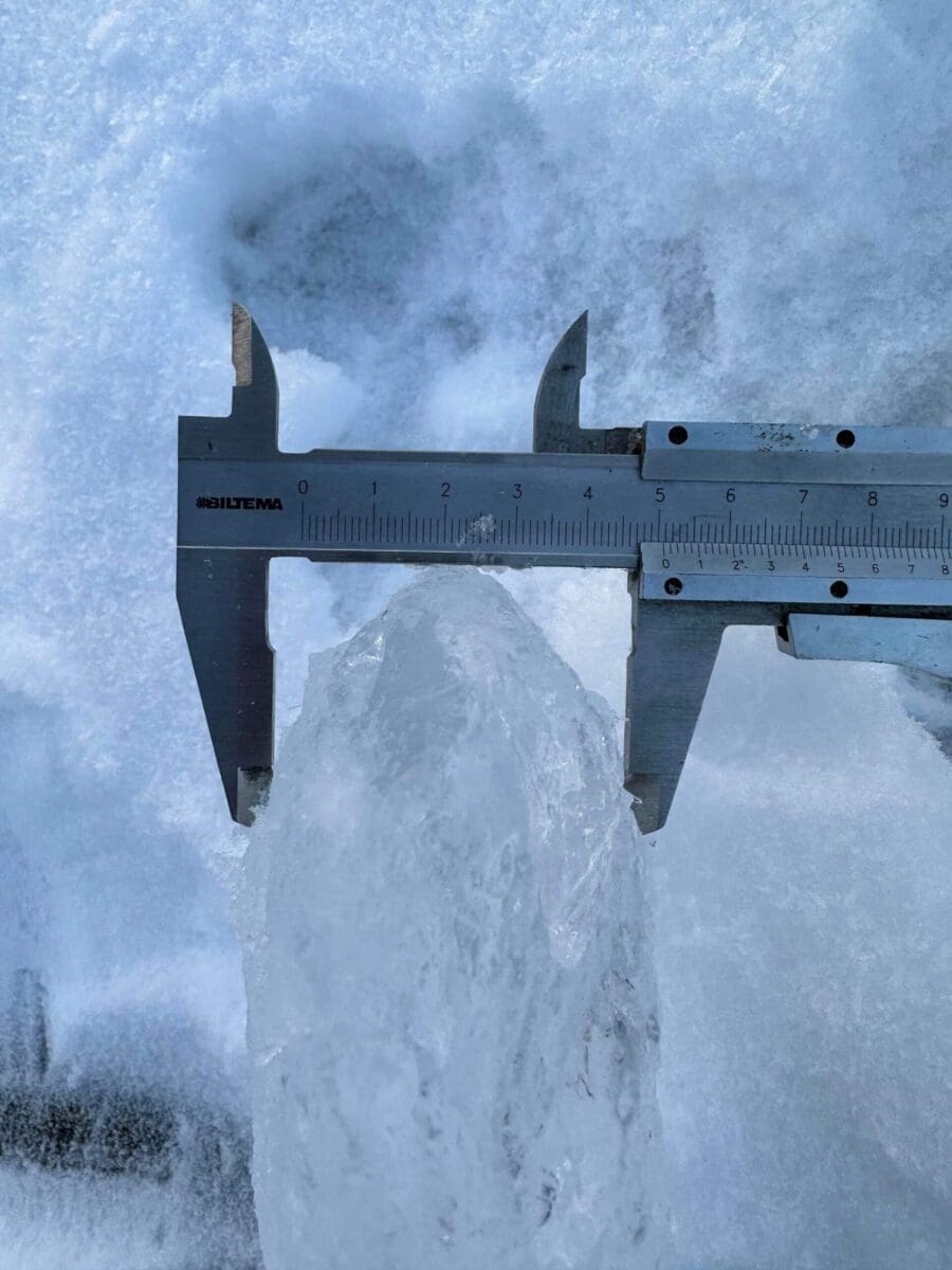 Tok opp ei isprøve, og vi hadde de nødvendig 50 mm vi trengte litt før kl 10. men vi ønsket gjerne noen mere mm får en fellestur. Så vi satte oppmøte kl 13. da har vi 3-5 mm mer!