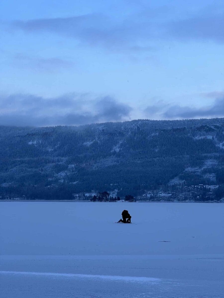 Ble mer snø, og noen syns det var kaldt. Den første kulda er ekstra kald, og vi hadde alt 2 timer på isen. Foto:Britt Celine
