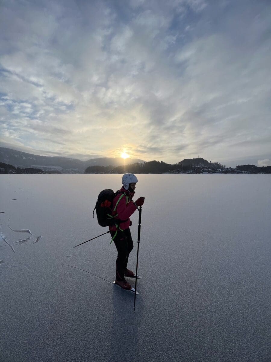 Fin dag på Vik i dag, men dessverre kom snøen som gjorde det mer krevende å lese isen. Heldigvis rakk det å bli 5cm med god stålis med masse fin lyd. Overganger mot tynnere partier var ikke mulig å se, så stavene måtte brukes kontinuerlig.