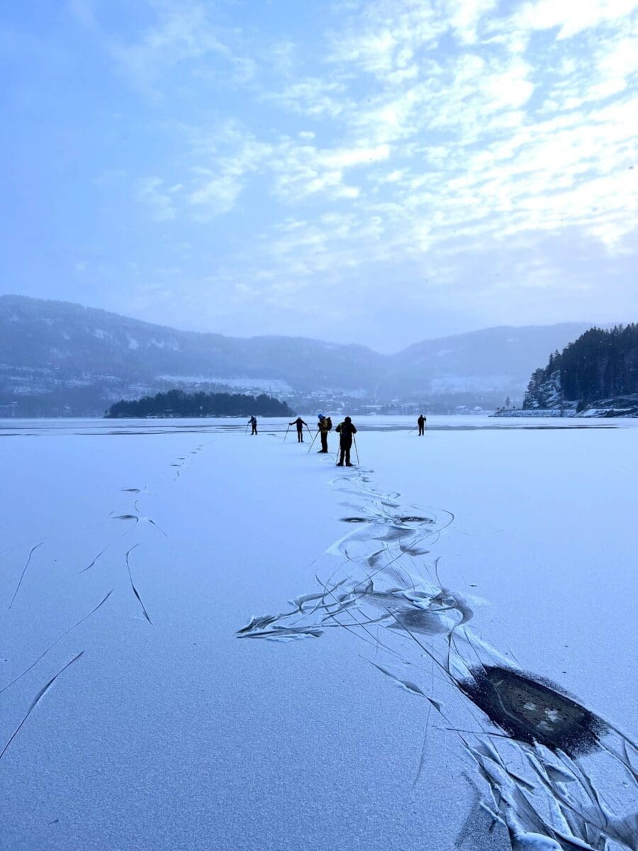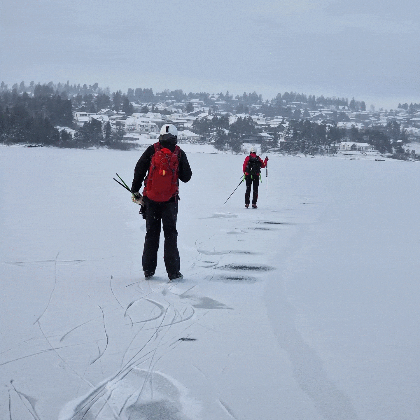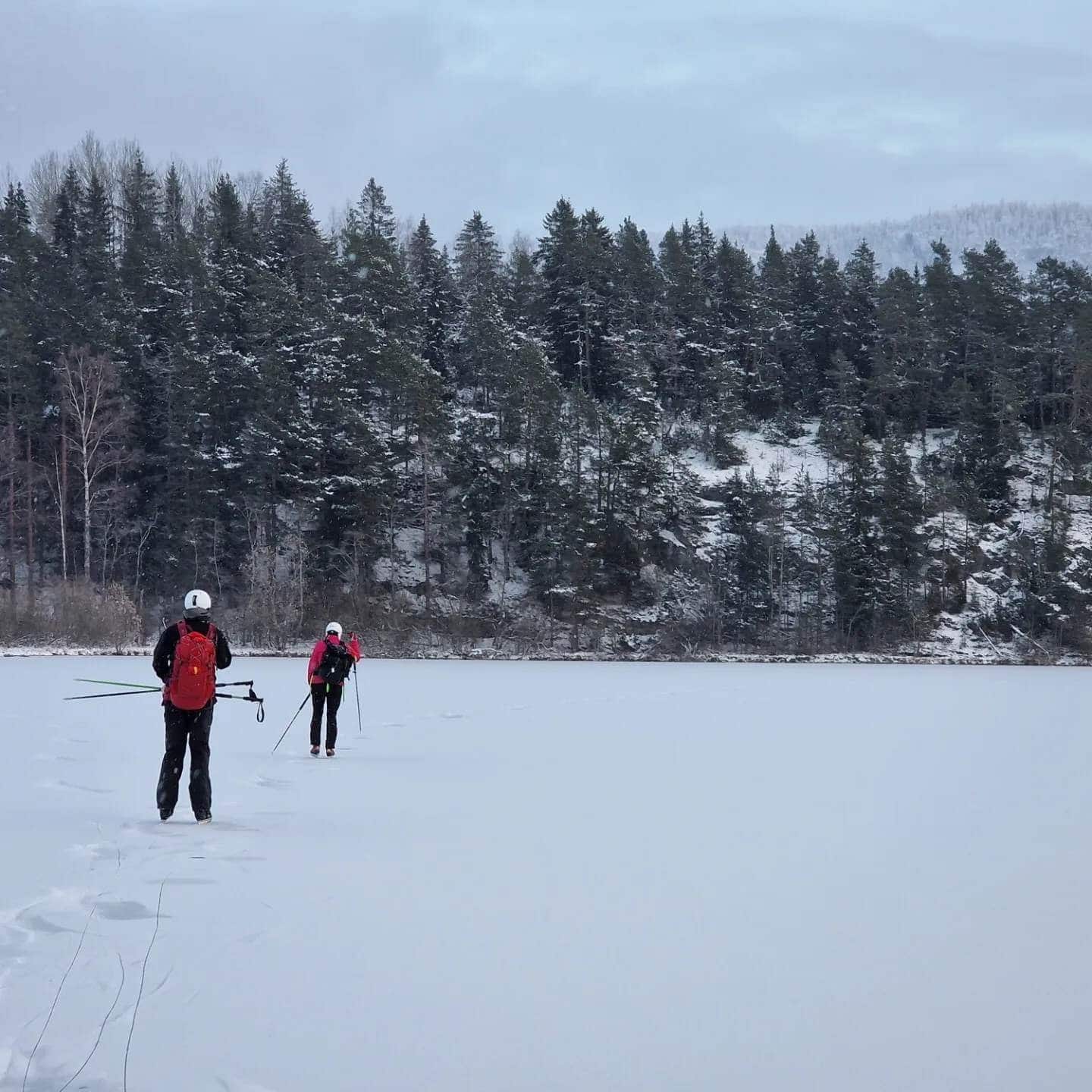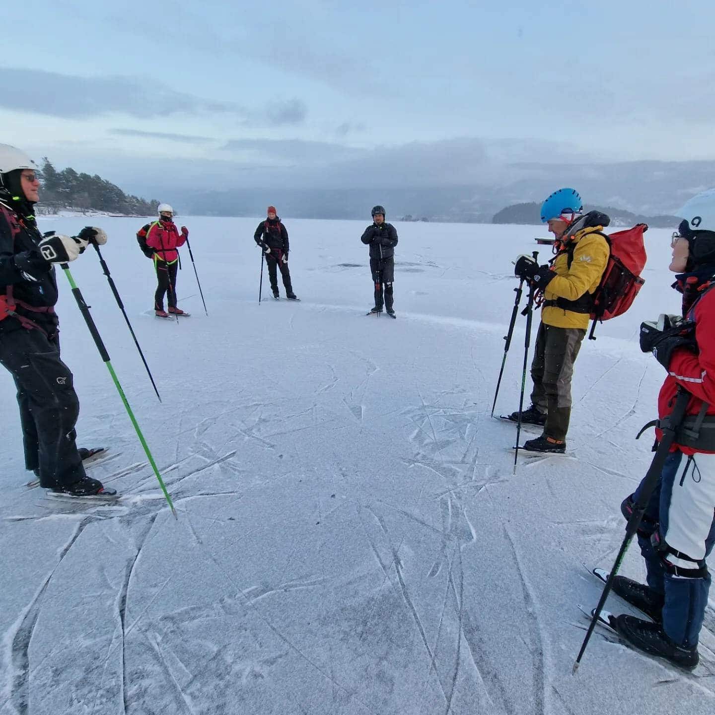 Ble ikke mye raskt tempo, men målet var opplæring i iskunnskap på tynn is, noe de fikk.