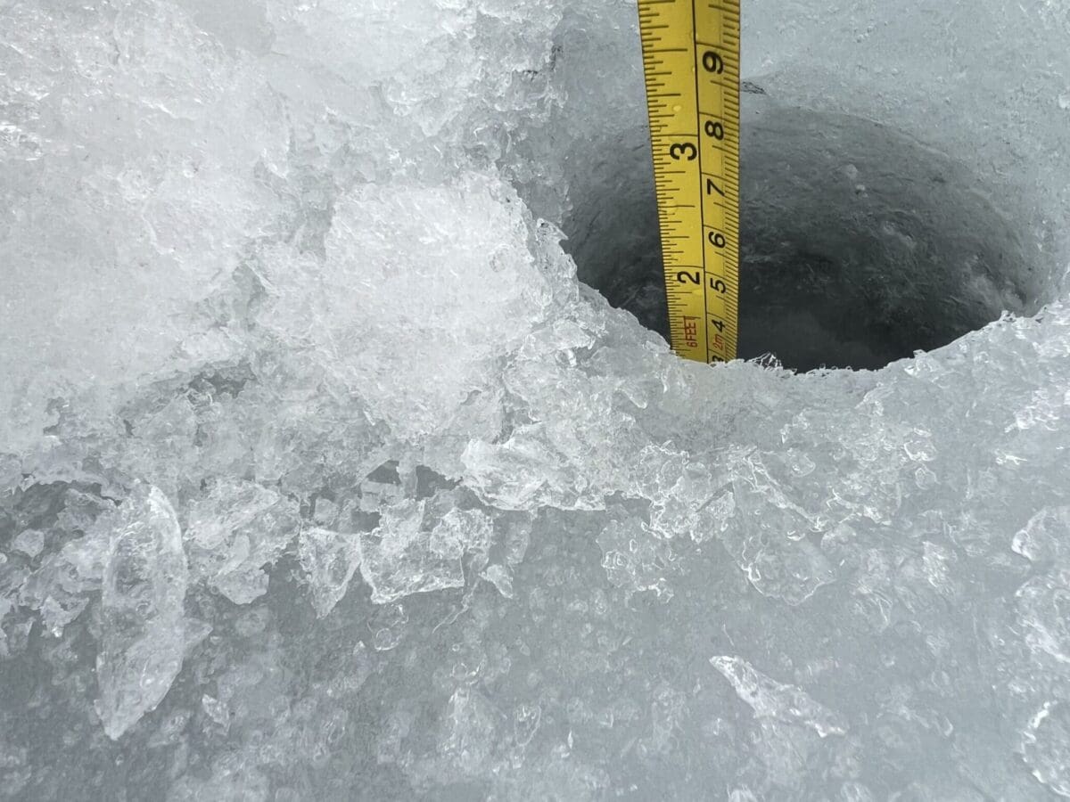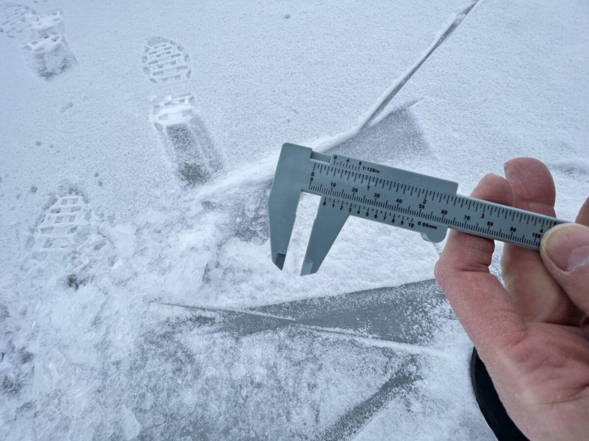 -4 grader og målt 30-33 cm i isfiskehull 3 forskjellige steder.