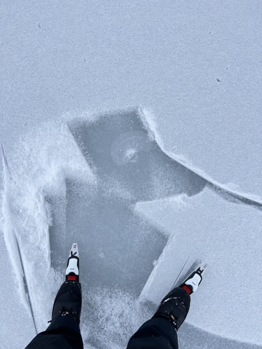 Men mye av isen vi gikk på Søndag er borte. I spissen er der råka pleier å starte.