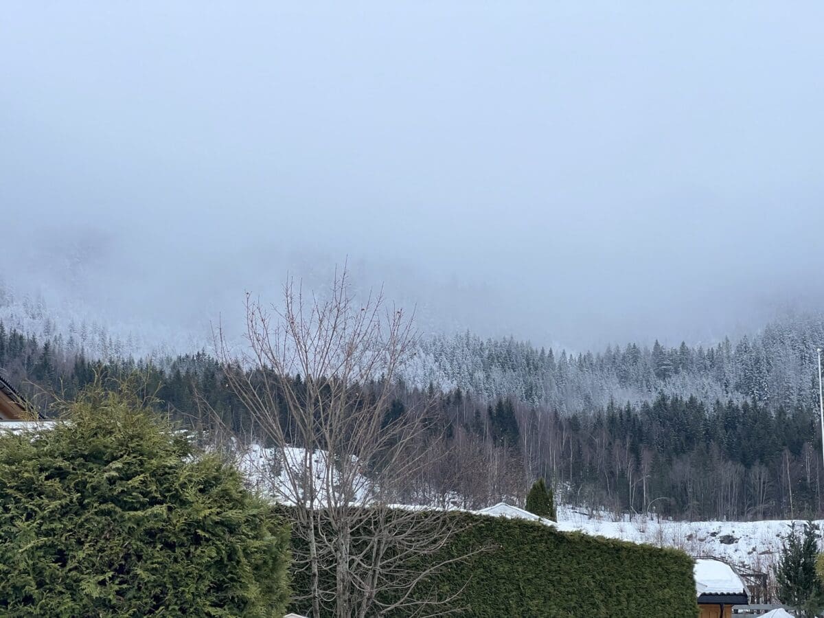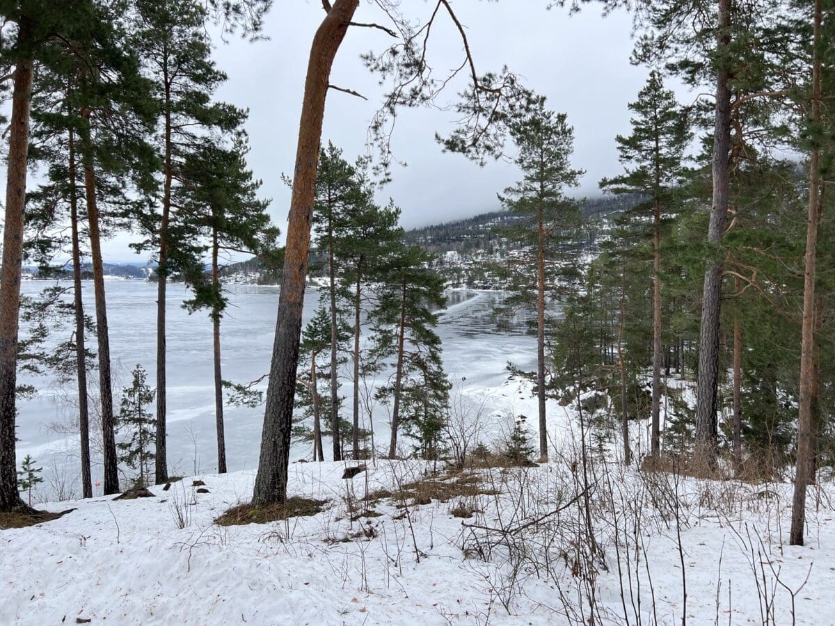 Hjemme ser du grensa hvor snøen henger på trærne langs Krokskogens rygg.