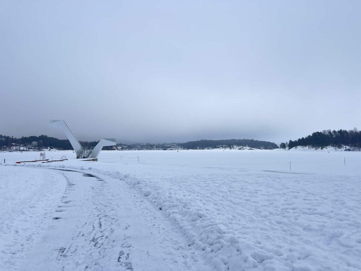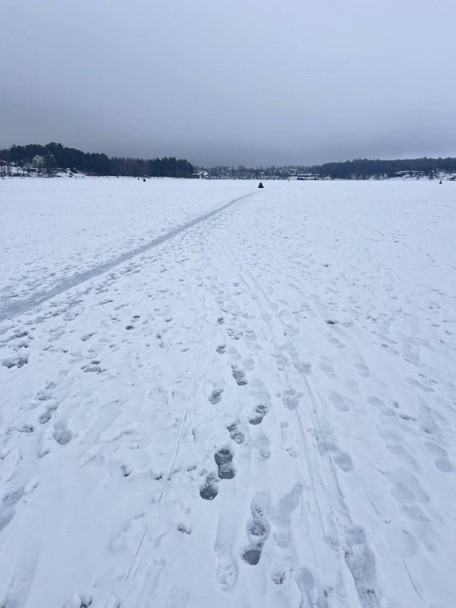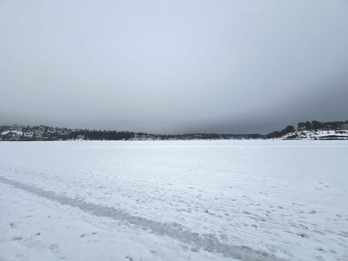 Gikk fra Kadettangen til Veritas. Mindre snø enn jeg hadde trodd, men veldig grov is under, trenger nok mye nedsmelting (og kulde for å bli bra) for skøyting, var ikke på den nyeste isen.