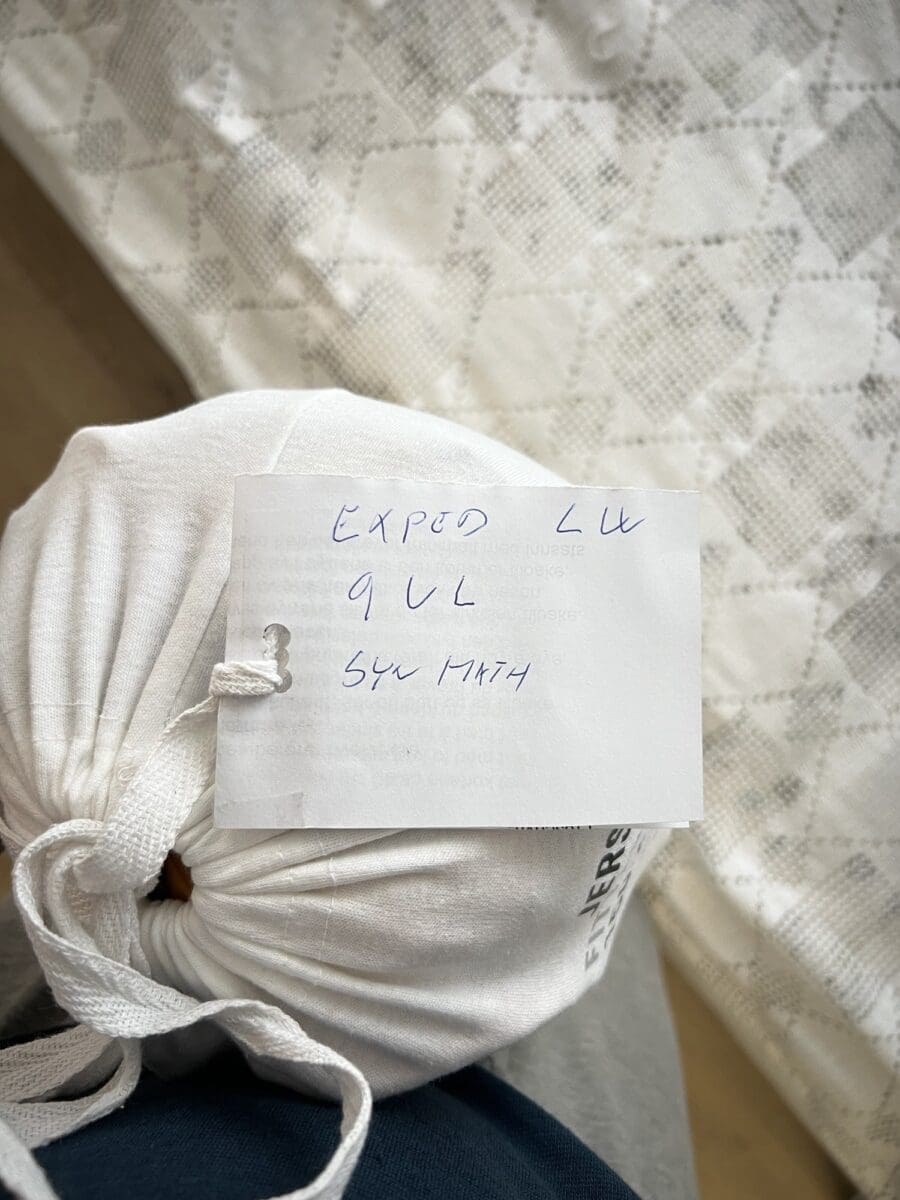 Fant et trekk å ha det i, havnet på finn og ble solgt. Fikk et nytt liv. Så nå har jeg bare et liggeunderlag med produksjonsfeil igjen. Er en del små hull på akkurat samme sted. Blir å teste om jeg kan fikse det. Blir bare for å teste.