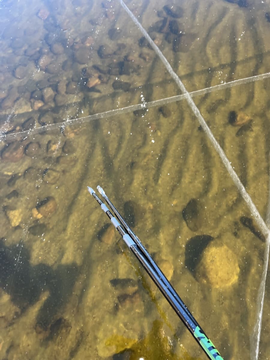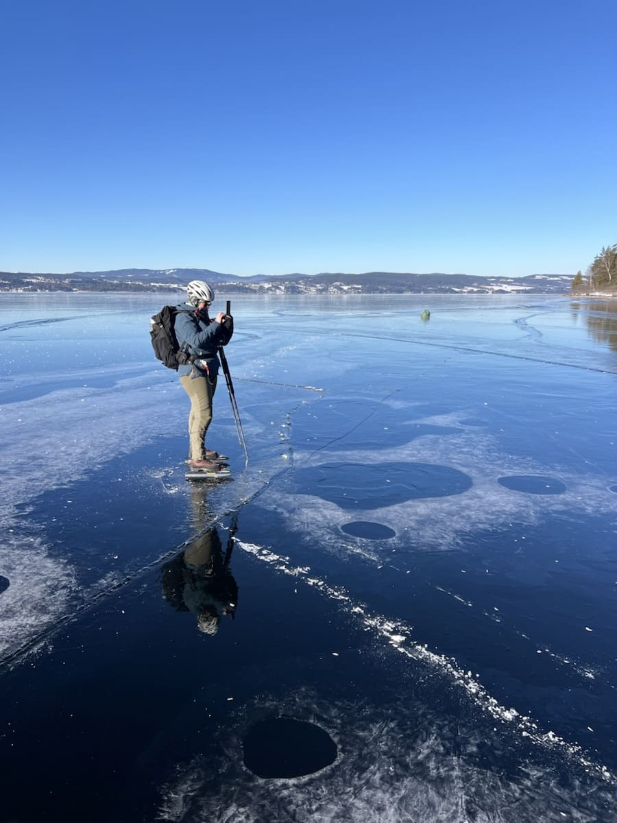 Himmelen var skyfri, det var kaldt, men nesten vindstille. Vi så enorme sammenhengende flater med stålis, men også store råker, brede sprekker med nattgammel is og noen områder med åpent vann. Tyrifjorden har alt – inkludert partier med flott stålis på bare 2–3 cm. Det er ikke et sted for nybegynnere, og god isforståelse er helt nødvendig.