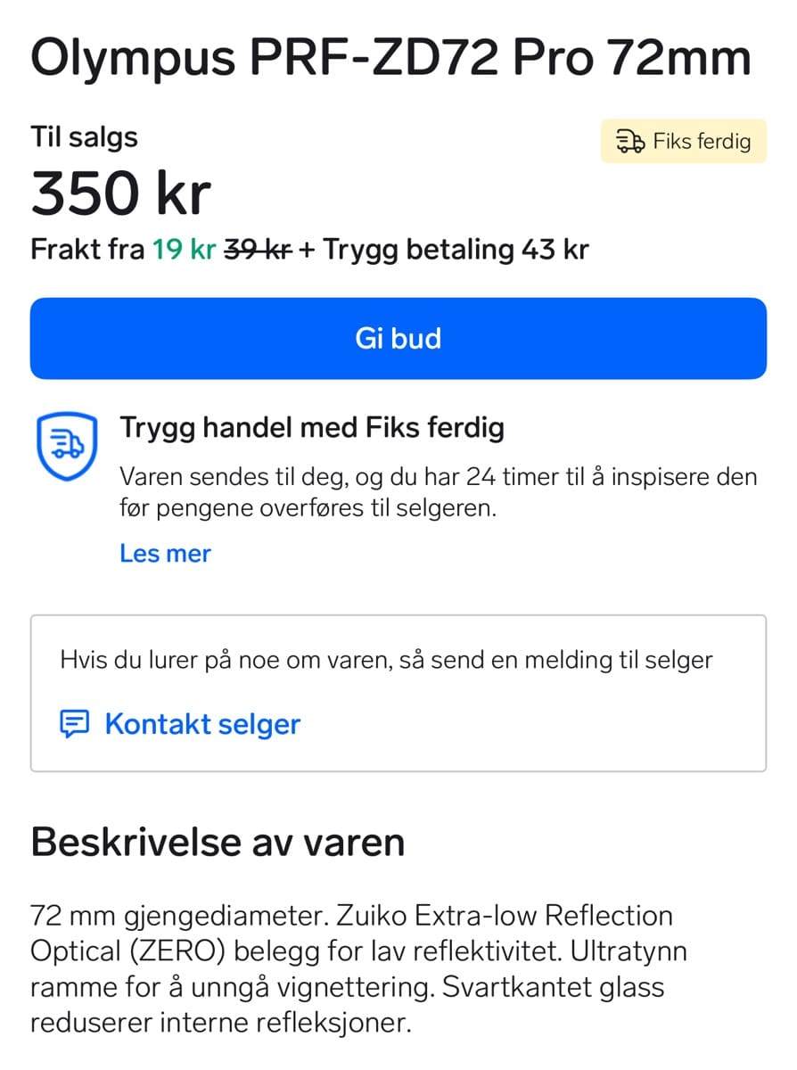 finn og pruting, pluss 19kr i frakt. Det passer på et par av objektivene jeg har og beskytter fremre linse. Skjære Rødstrupe Kategorier: FotoHva har jeg kjøpt nå