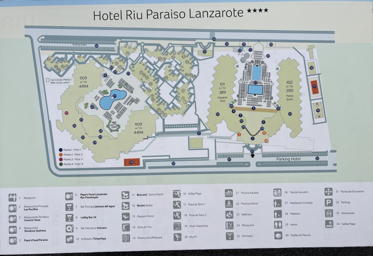 Vi er på ferie, og kartet over hotellet er tegnet for kjentfolk. Alle «tunneler» snarveier er ikke tegnet inn på kartet.