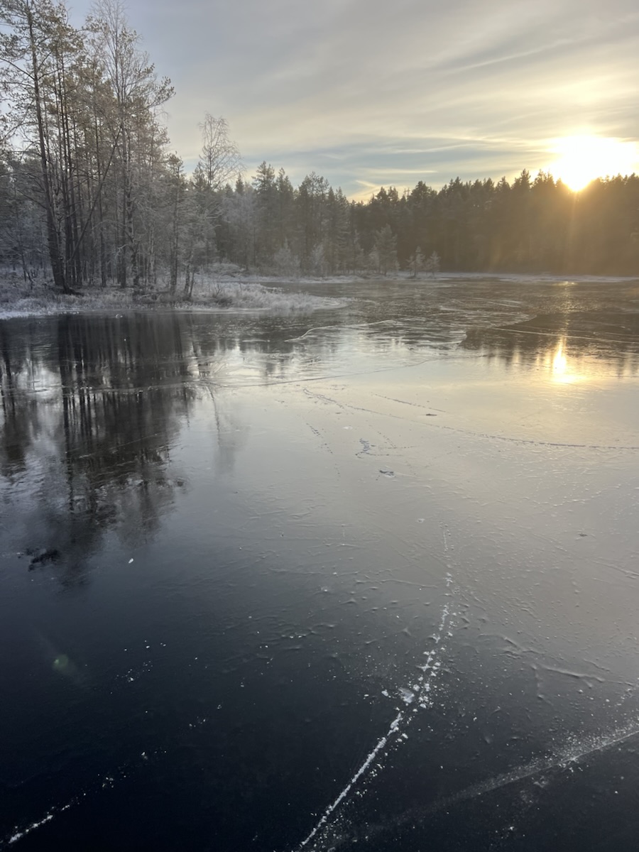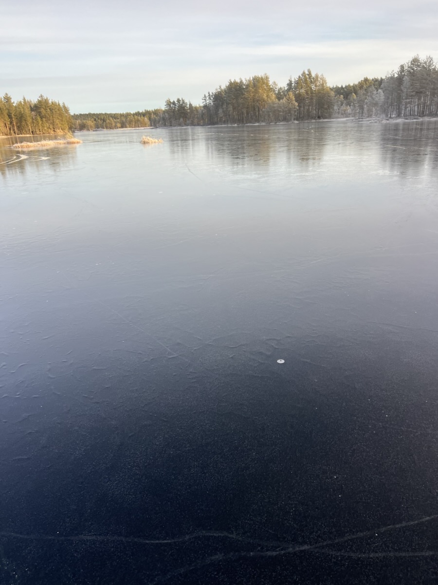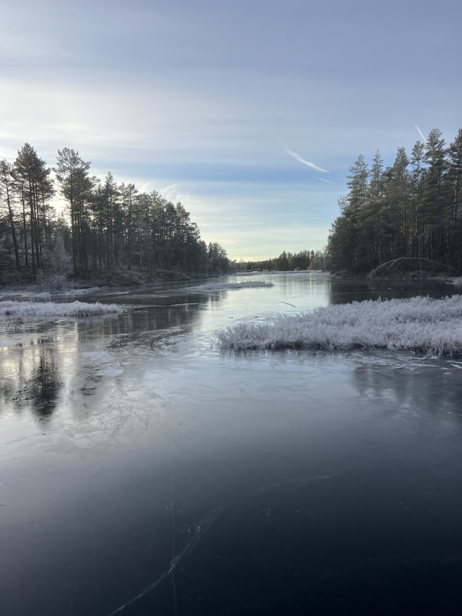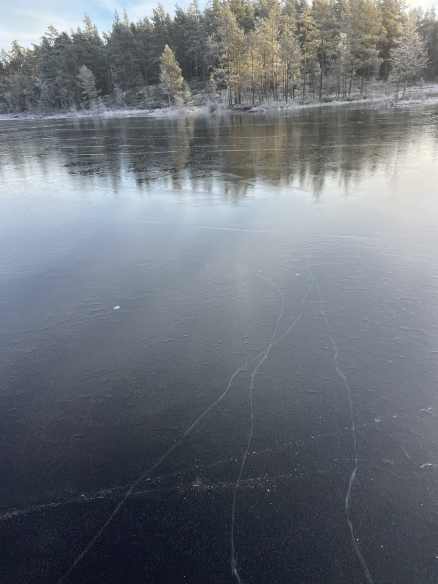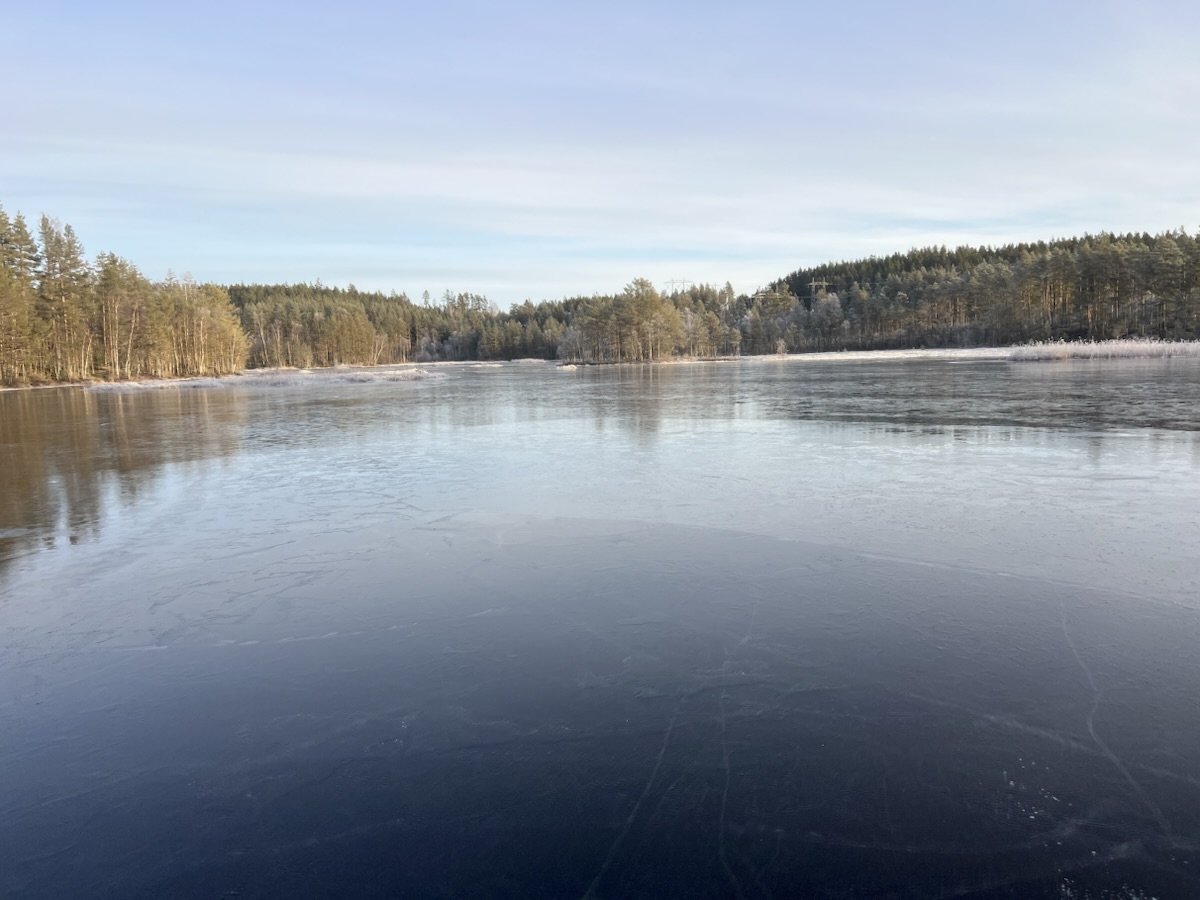 Her gikk vi. Vi kom oss ikke inn til Svarttjern, selv om vi prøvde – ett døgn med is i en kanal holder ikke.